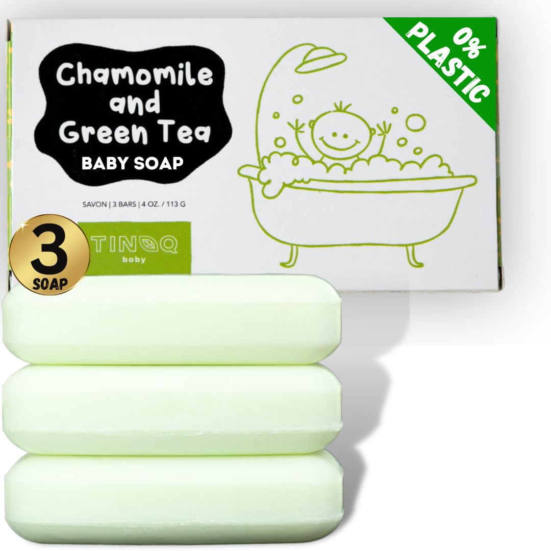 Tinoq Baby wash and Shampoo | Organic Baby Soap Bar | HYPOALLERGENIC Baby Bath Soap Sensitive Skin | Shea Butter & Coconut Oil | Fragrance Free | Plastic Free | No SLS | Vegan | 3 BARS