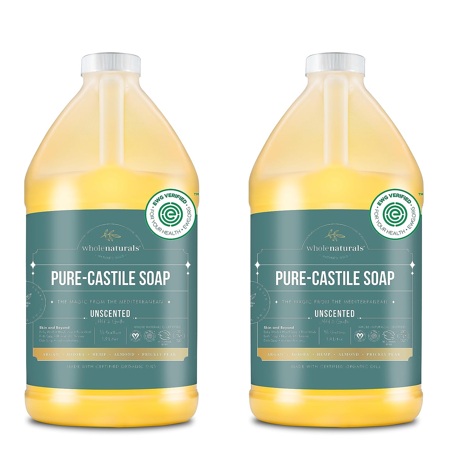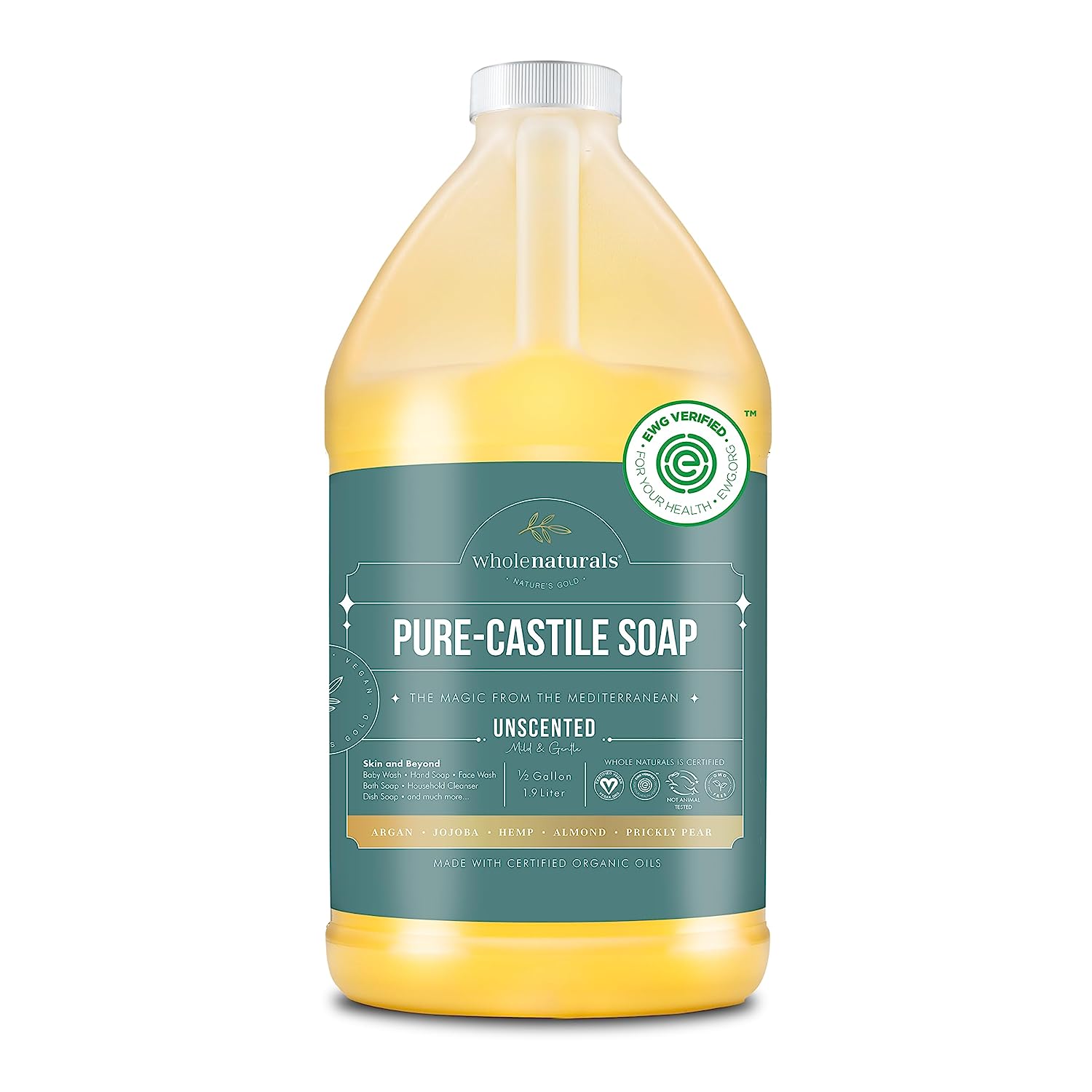 WHOLENATURALS Pure Castile Soap Liquid, EWG Verified & Certified Palm Oil Free Unscented, Natural Soap, Mild & Gentle Non-gmo & Vegan - Organic Body Wash, Laundry, and Baby Soap - 64 Fl Oz - Pack of 1