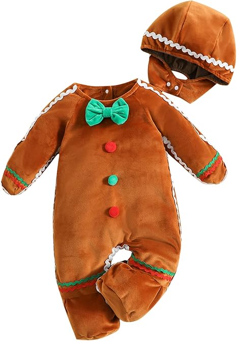 Adobabirl Baby Gingerbread Costume Boy Girl Christmas Outfit Gingerbread Romper Jumpsuit Footies with Hat Cute Cosplay Outfit