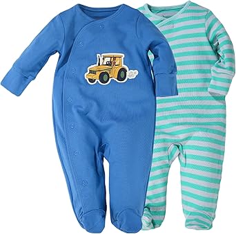 Baby Long Sleeve Romper, 100% Cotton Jumpsuit, 2-Pack One-pieces Footie for Infant boys and girls