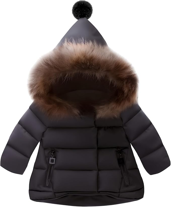 Baby Boys Girls Hooded Snowsuit Winter Warm Fur Collar Hooded Down Windproof Jacket Outerwear