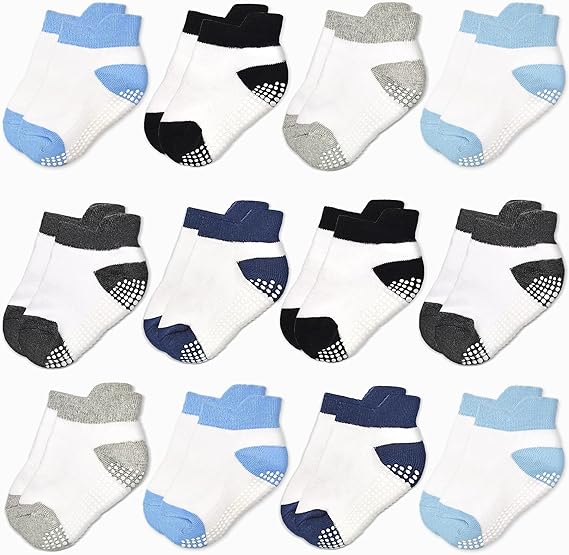 HYCLES Non-Slip Baby Socks Infant Girls Boys Ankle Anti Slip Socks With Grips For 0-12 Month Toddler 1-5 Years Kids