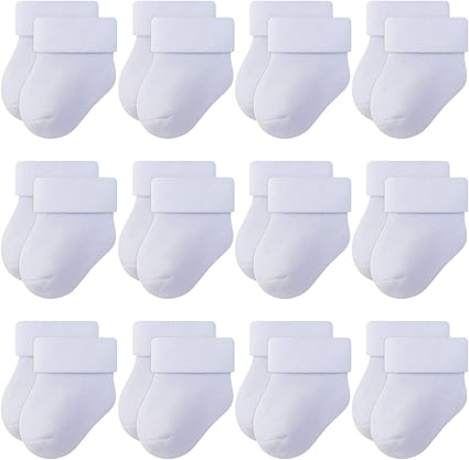 RATIVE Newborn Baby Socks 0-6, 6-12 Months Thick Terry Turn Cuff Socks for Unisex Boys Girls