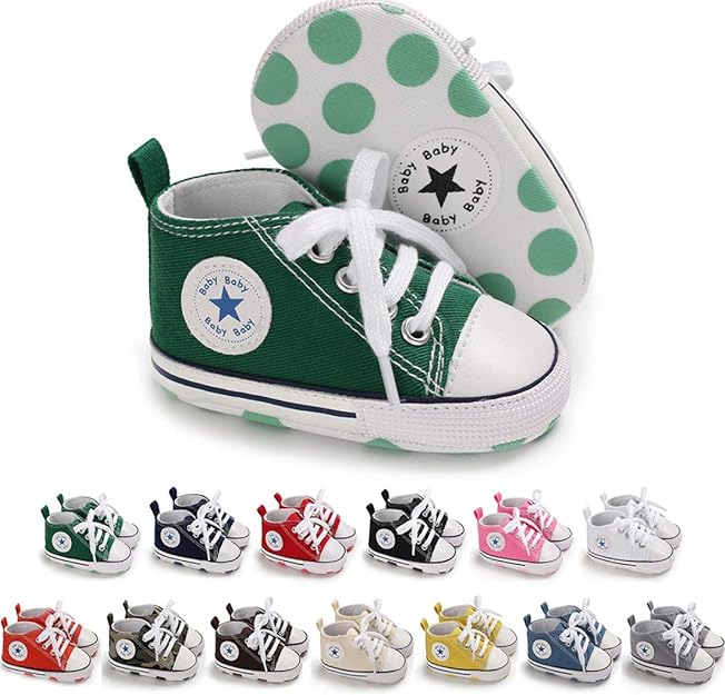 KIDSUN Unisex Baby Boys Girls High Top Sneaker Soft Anti-Slip Sole Newborn Infant First Walkers Canvas Denim Shoes