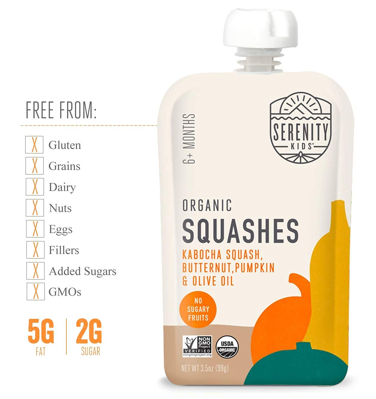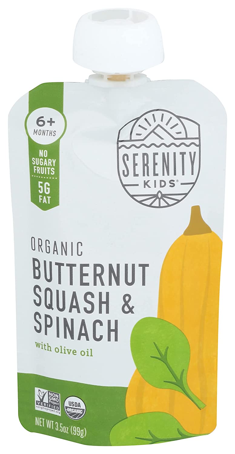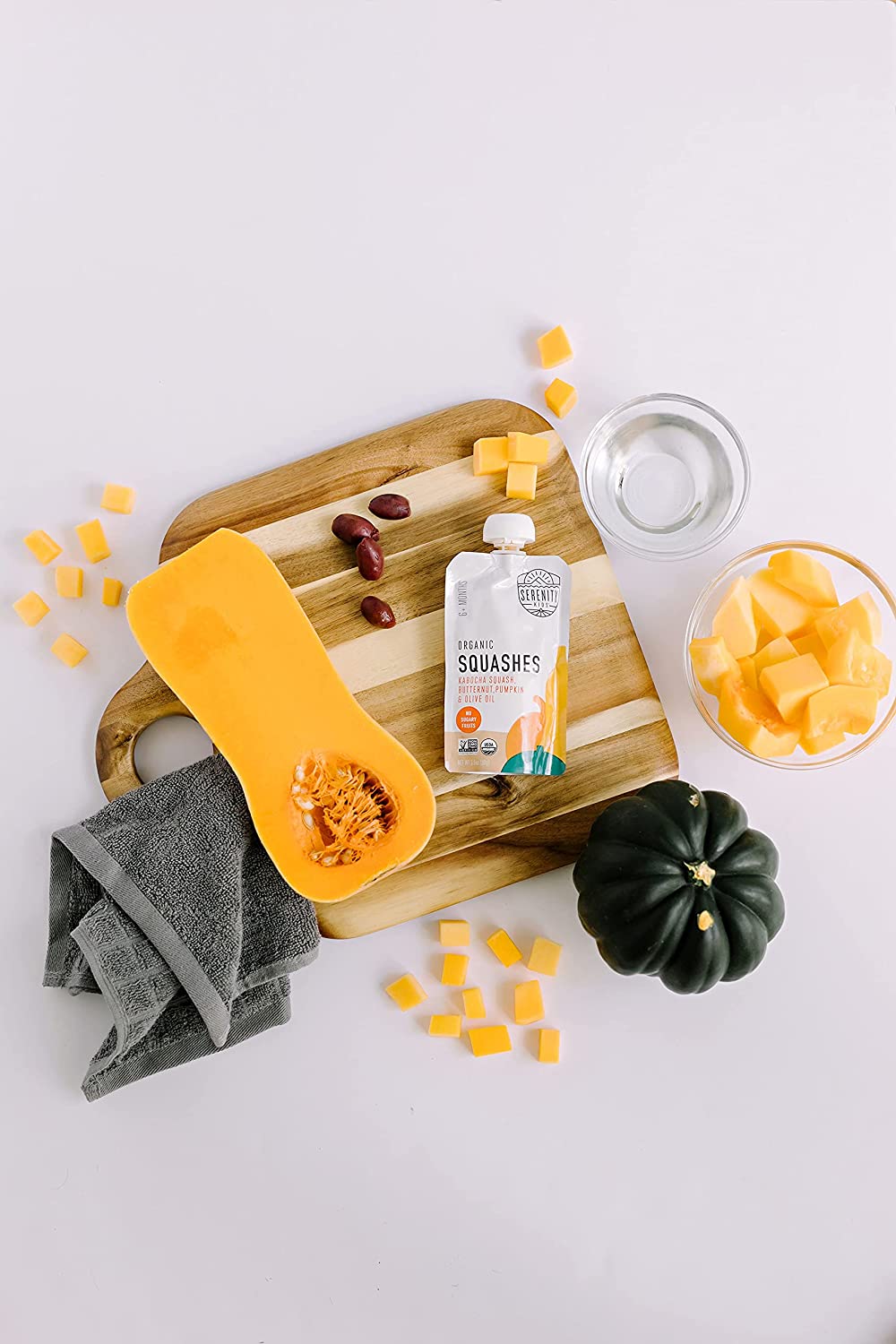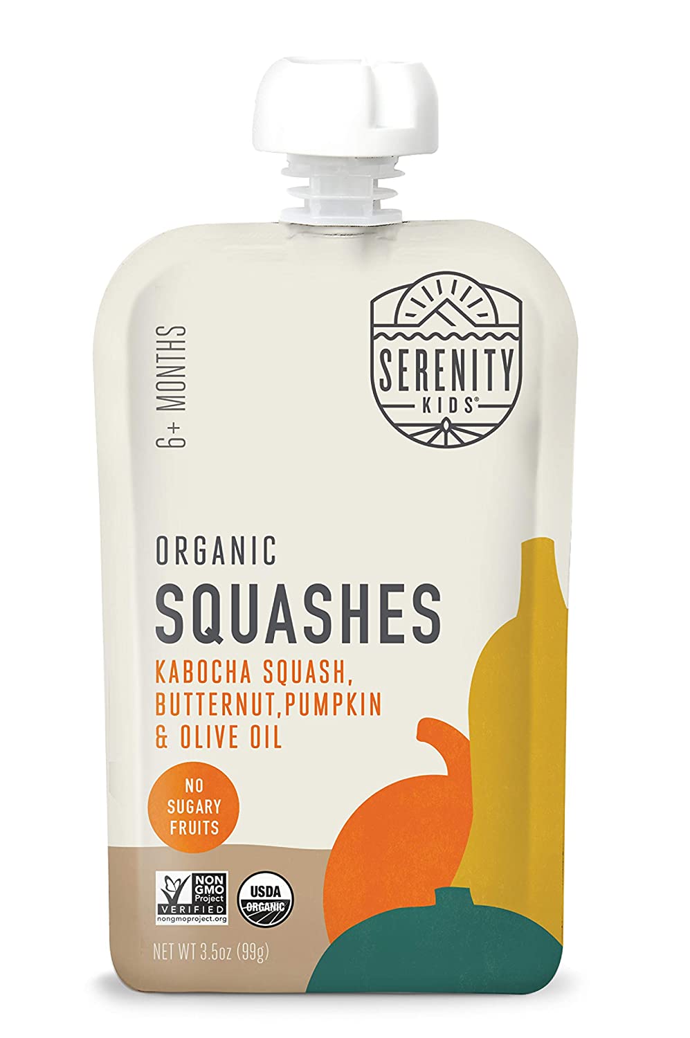 Serenity Kids 6+ Months USDA Organic Veggie Puree Baby Food Pouches | No Sugary Fruits or Added Sugar | Allergen Free | 3.5 Ounce BPA-Free Pouch | Squashes | 6 Count