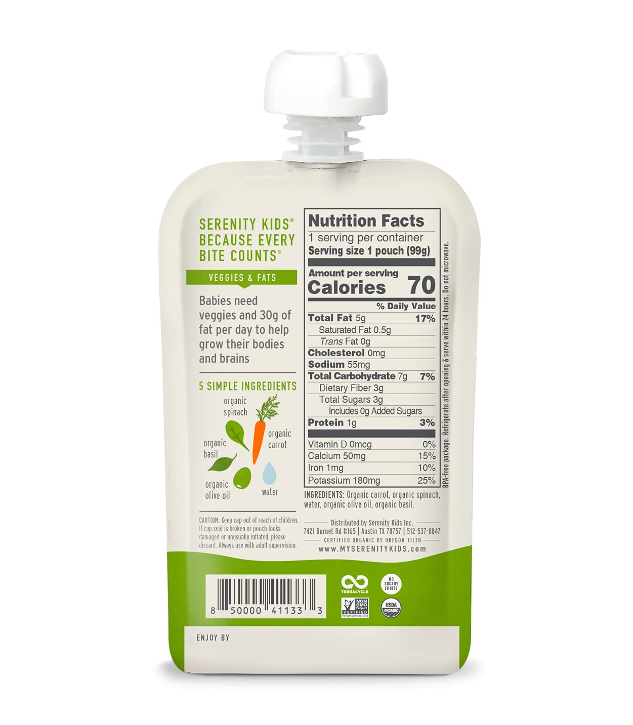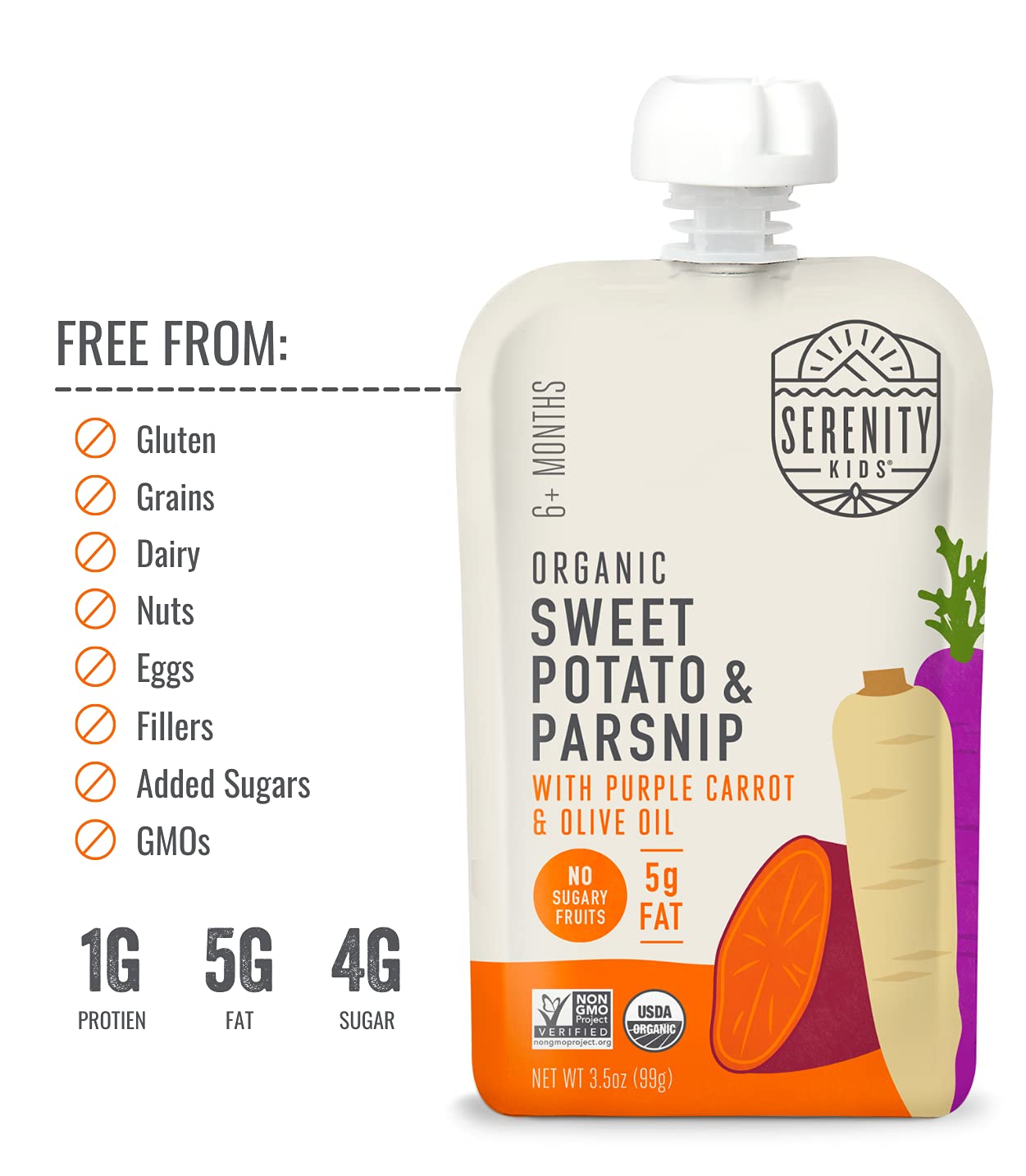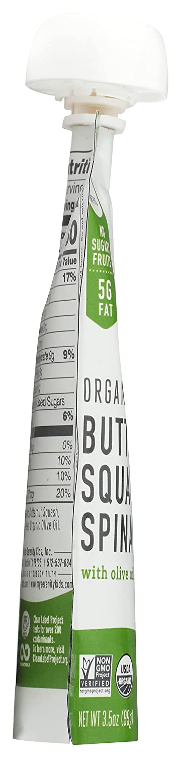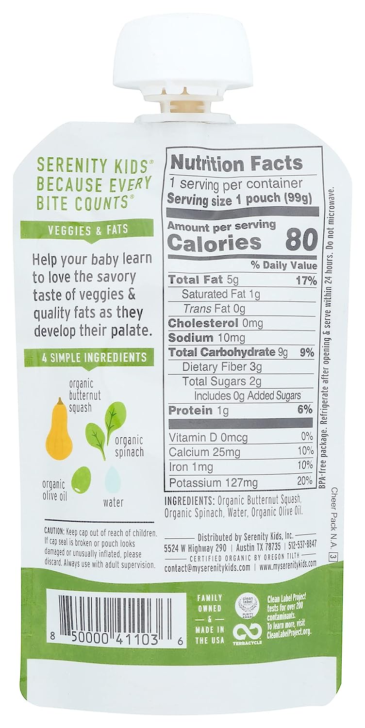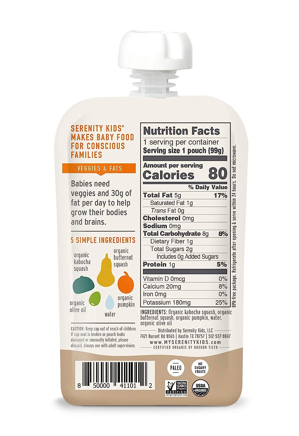 Serenity Kids 6+ Months USDA Organic Veggie Puree Baby Food Pouches | No Sugary Fruits or Added Sugar | Allergen Free | 3.5 Ounce BPA-Free Pouch | Squashes | 6 Count