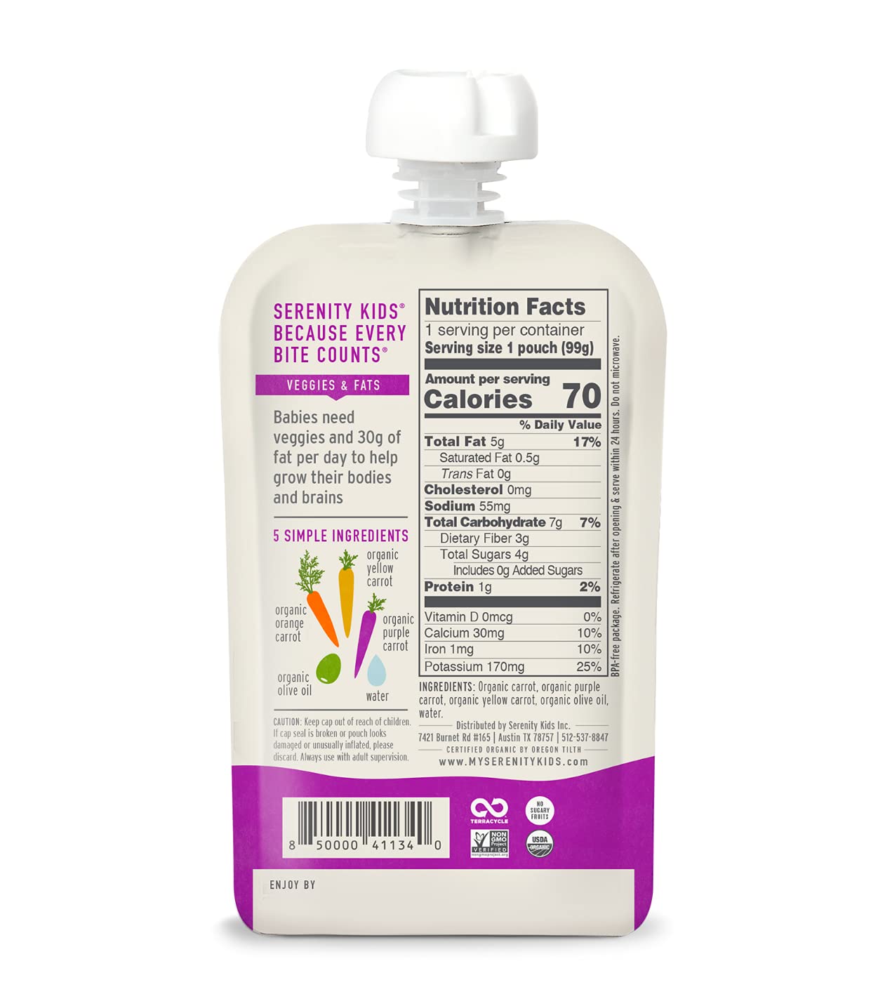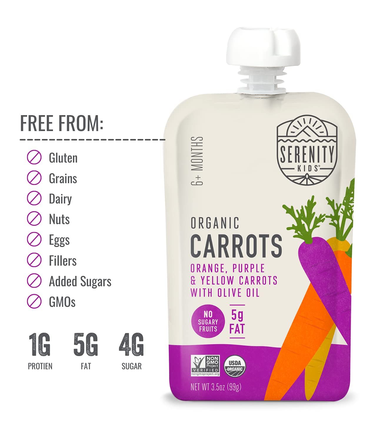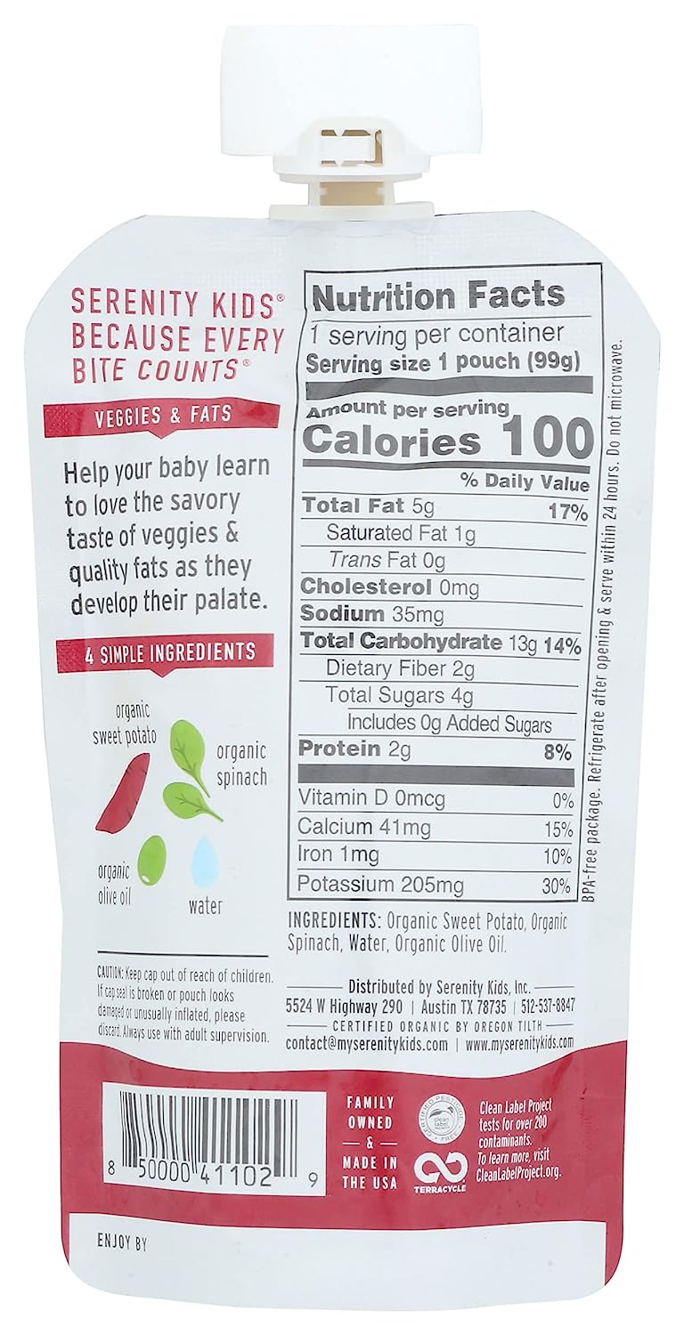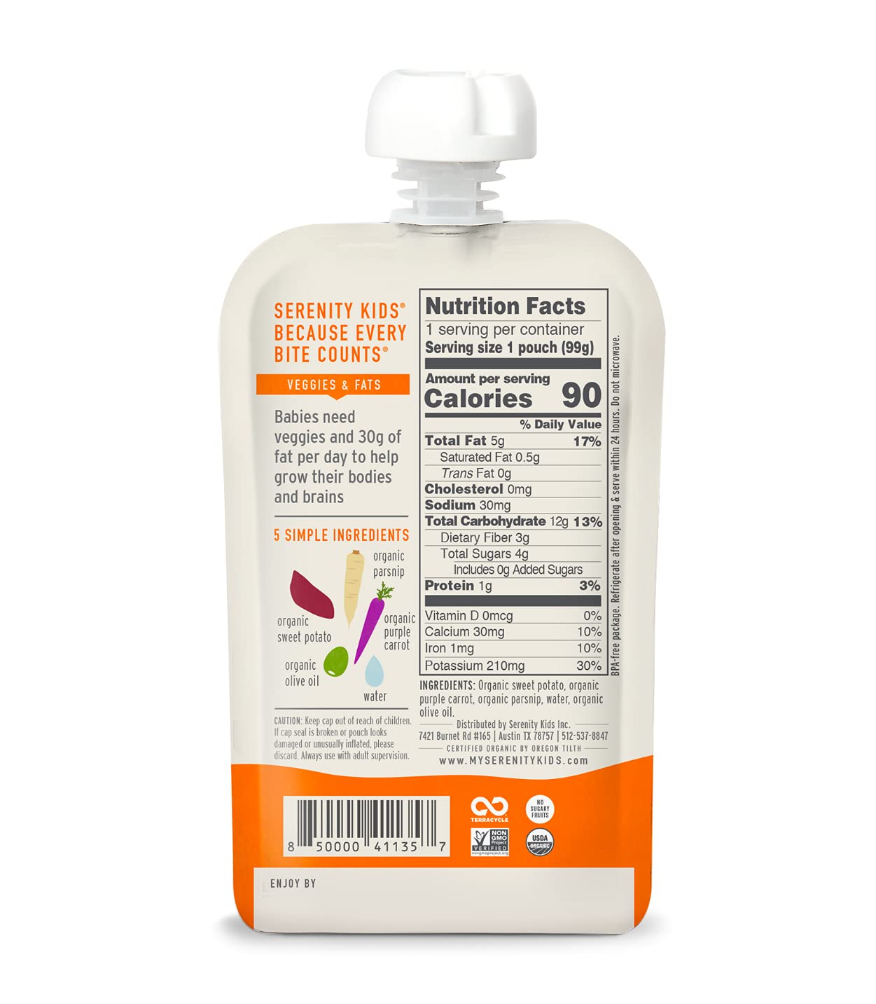 Serenity Kids 6+ Months USDA Organic Veggie Puree Baby Food Pouches | No Sugary Fruits or Added Sugar | Allergen Free | 3.5 Ounce BPA-Free Pouch | Squashes | 6 Count