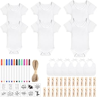 60/110/220 Pcs DIY Baby Bibs Bodysuit Set Baby Shower Game White Baby Bibs White Newborn Bodysuit for Baby Shower