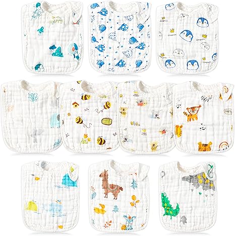 BUoonyer 10pcs Snap Muslin Cotton Bibs, Baby Bandana Drool Bibs, Adjustable Soft Absorbent Cotton Scarf