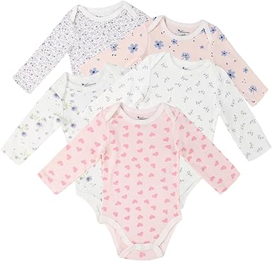 Baby Girls Long-Sleeve Bodysuit, 100% Cotton 5 Pack of Baby Girls Onesie, 0-24 Months Soft Baby Girls Clothes