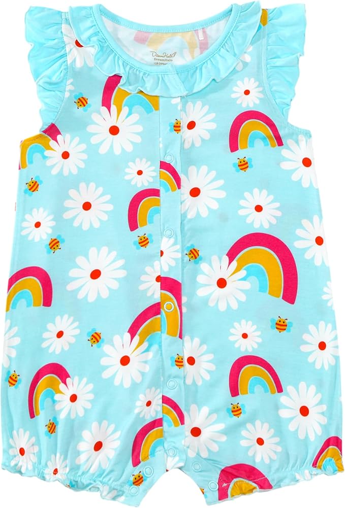 Baby Girl's Romper-Viscose Made from Bamboo, Ruffle Sleeve Jumpsuit Infant Rompers Summer Outfits Soft Clothes