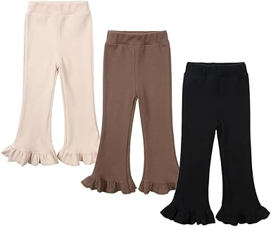 Bafeicao 3 Pack Toddler Baby Girl Pants Ribbed Bell Bottom Flare Pants with Ruffle Elastic Waist Leggings Trousers