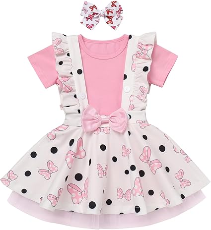 AWIBMK Baby Girls Mouse Birthday Outfits Mouse T Shirt and Suspender Tulle Skirt with Headband Cake Smash Halloween Costume