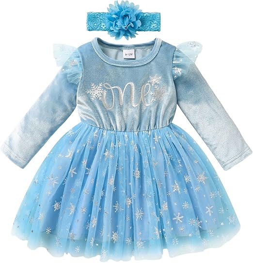 Baby Girl Birthday Dress Velvet One Year Old Snowflake Tulle Skirt with Hairband Winter Clothes