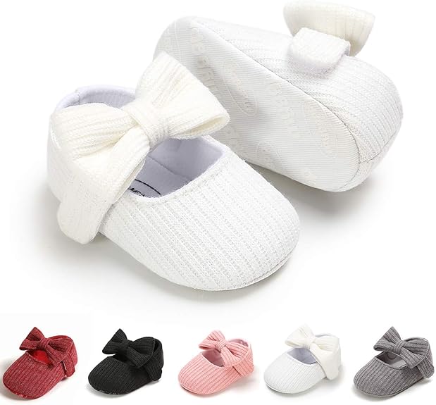 Baby Girls Mary Jane Flats with Bowknot Flowers Princess Wedding Dress Ballet Shoes Non-Slip Toddler First Walkers Newborn Crib Shoes