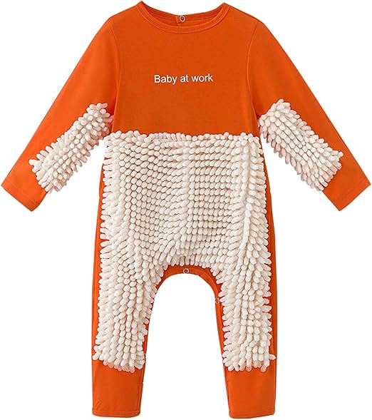 Cute Baby Mop Onesie, Funny Long Sleeve Romper, Perfect for a Crawling Baby Footies Cleaning Mop Romper