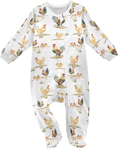 Dussdil Chickens Rooster Baby One-Piece Footies Hen Pattern Newborn Boys Girls Rompers Pajamas Sleep Play Footed Pjs