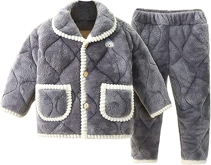 Boys Girls Winter Thickened Warm _���ajama Set Button Down Fleece Top&Pants Kids _��Õleep_��¡ear Baby Girl