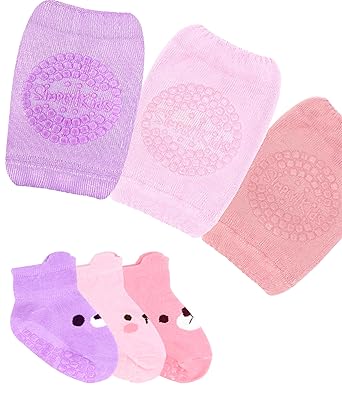 Baby Knee Pads for Crawling and Baby Socks for Walking (6 Pairs, 6-12 12-18 Months) I Toddler Socks with Grippers and Crawling Anti-Slip Knee Pads Infant Boys Girls Rodilleras para Bebes que Gatean