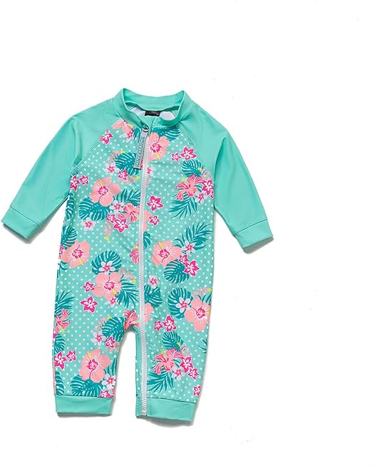 Baby Girl Sunsuits Full-Length Zipper UPF 50+ Sun Protection One Piece Swimwear with Sun Cap