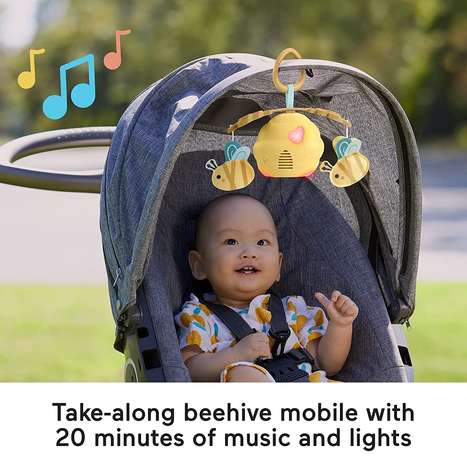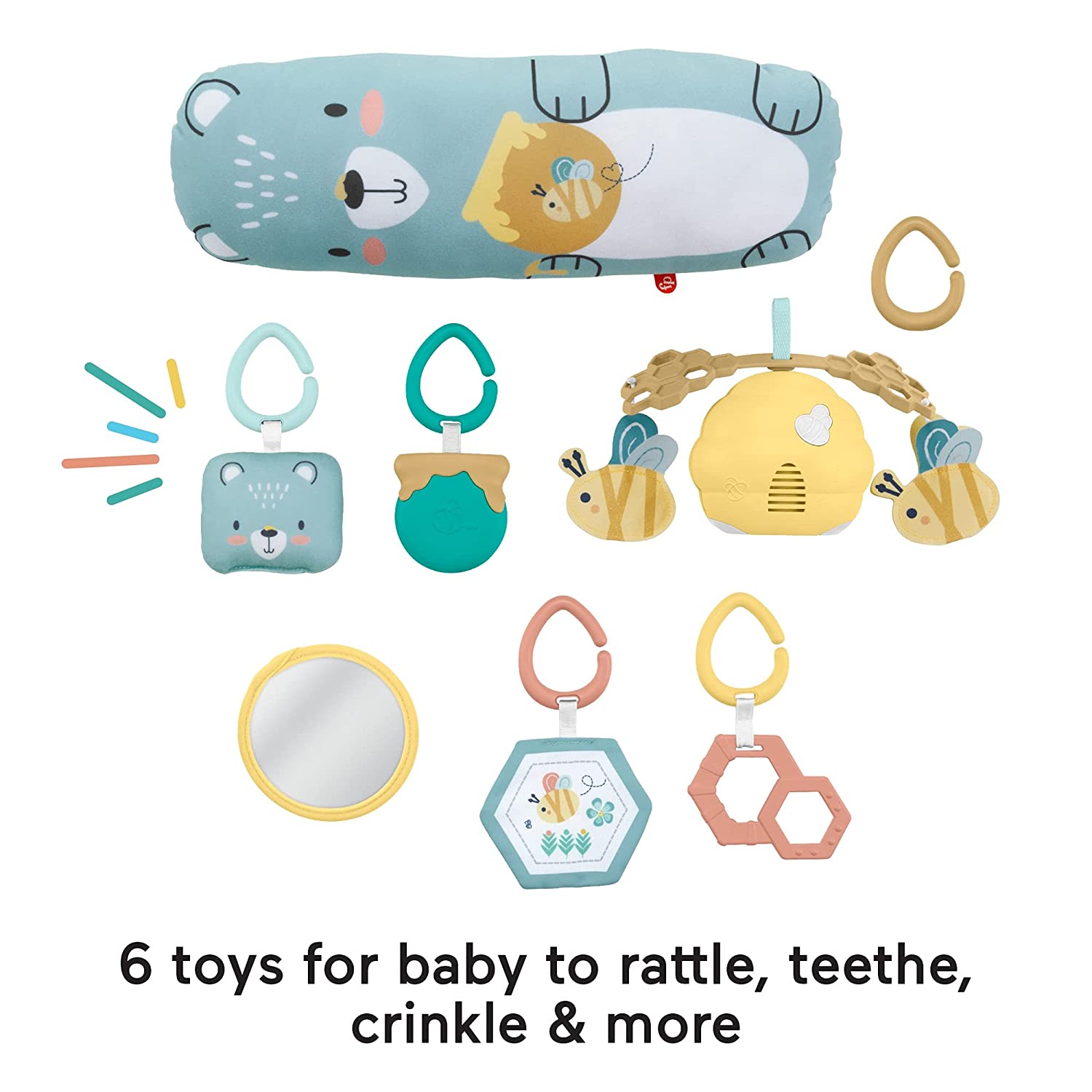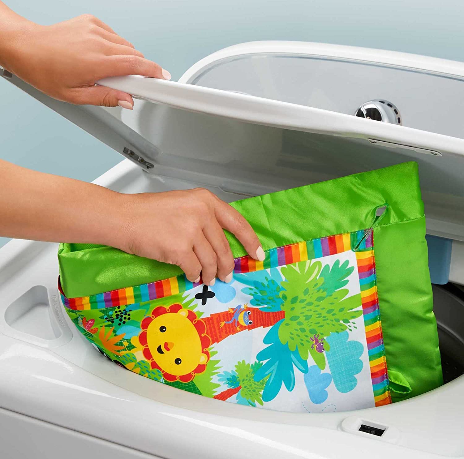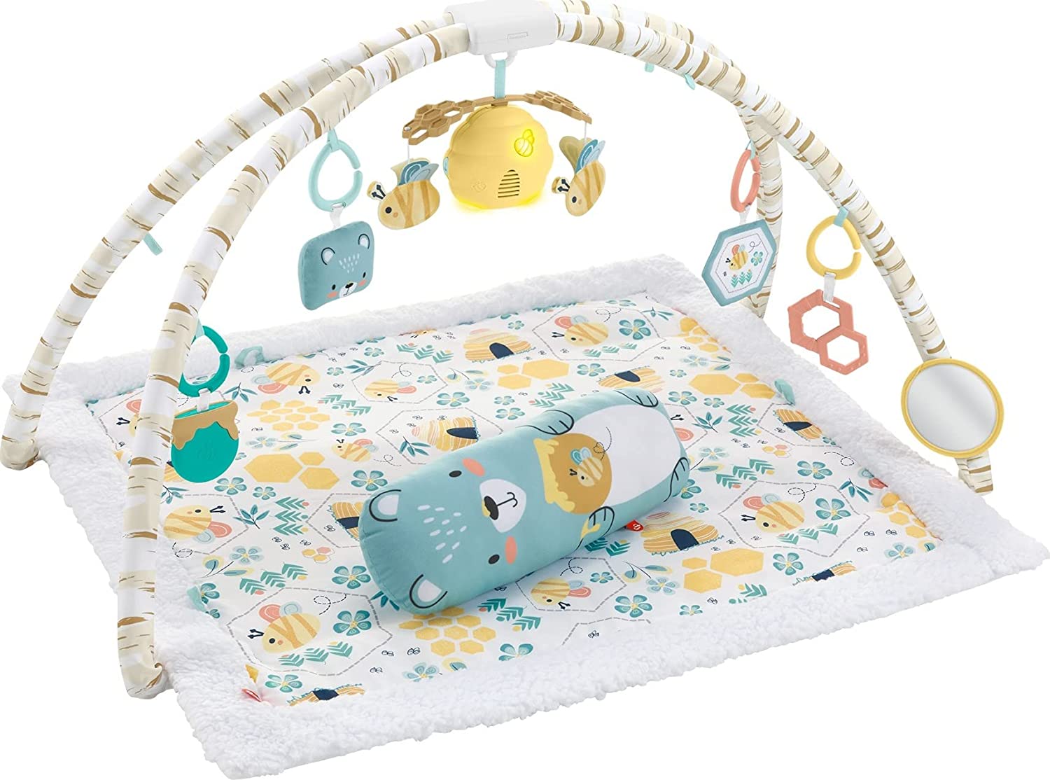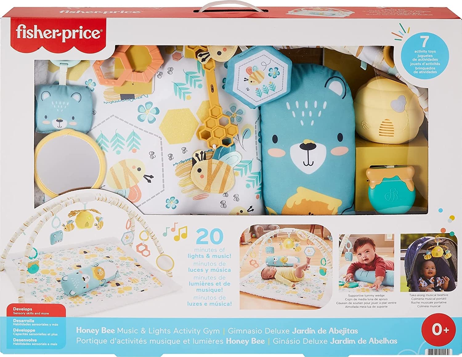 With 3 ways to play and more than 10 toys & activities, the Fisher-Price Rainforest Music & Lights Deluxe Gym keeps your baby busy from newborn to toddler, at home or on the go! The rainforest comes to life with music, lights and nature sounds that respond to baby’s movement. During lay & play time, hanging activity toys & motion-activated music encourage newborns to reach, bat & play. Lower the toys or move them to play mat to for tummy time fun. Sweet details, including a soft, satiny mat border and large crinkle leaf, offer sensory play for babies. For on-the-go fun, the take-along toucan easily attaches to a stroller and plays up to 20 minutes of music and lights.