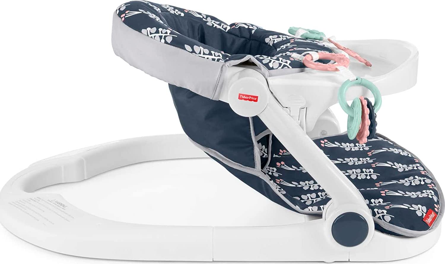 Fisher-Price Portable Baby Chair Sit-Me-Up Floor Seat With Snack Tray And Developmental Toys, Navy Garden
