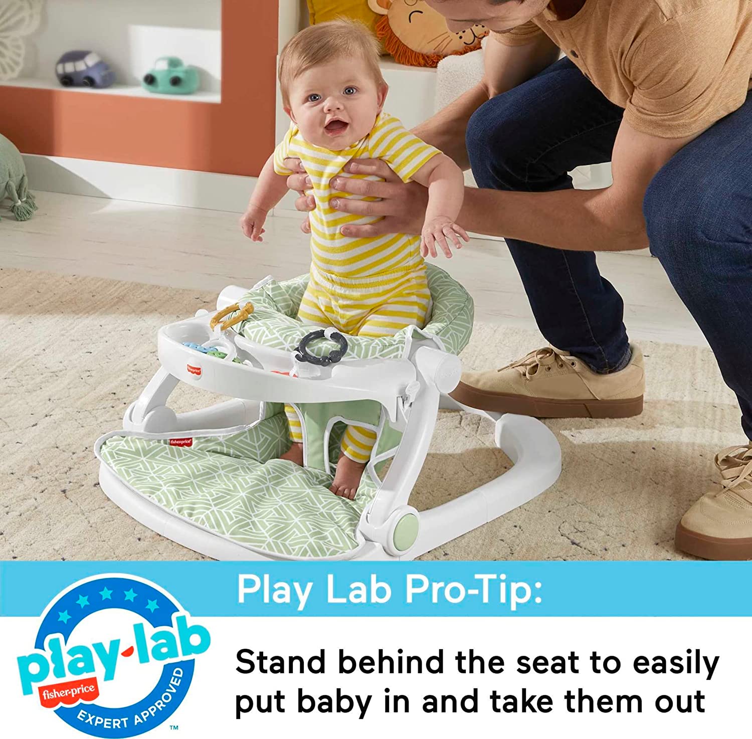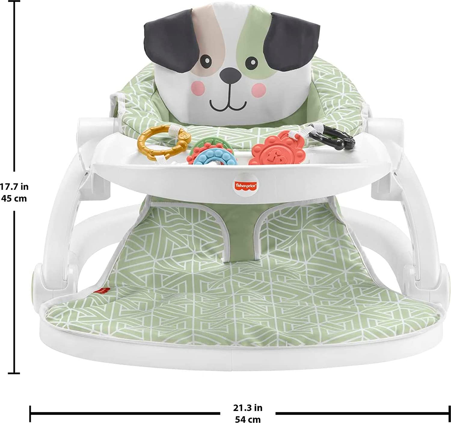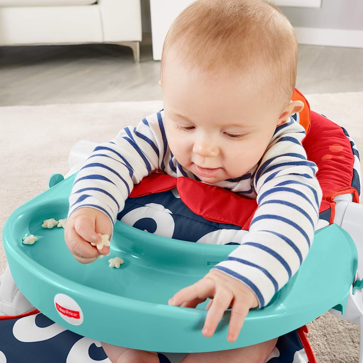The Fisher-Price Sit-Me-Up Floor Seat is cozy for your baby and super-convenient for you. The soft fabrics and wide base of this portable infant chair help support your baby as you sit them up to interact with the world around (and those fun toys!). The convenient snack tray is perfect for feeding. And the best part? The chair folds flat, making it easy to store or take with you as you travel! Use only with a child who is able to hold head up unassisted and who is not able to climb out or walk.