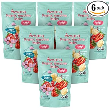 Amara Smoothie Melts - Mixed Red Berries - Baby Snacks Made With Fruits and Vegetables - Healthy Toddler Snacks For Your Kids Lunch Box - Organic Plant Based Yogurt Melts - 6 Resealable Bags