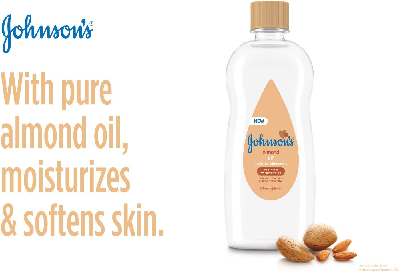 Massage and nourish delicate skin with Johnson's Almond Oil Moisturizing Body and Massage Oil. Specially designed for baby's delicate skin and great for the whole family, this baby oil gently moisturizes for soft, smooth skin. The nourishing formula with mineral oil and pure almond oil is ideal for massaging baby and adult skin, and locks in up to 10 times more moisture on wet skin when compared to an ordinary lotion on dry skin. Like all Johnson's products, the skin softening baby oil is and is paraben-, phthalate-, and dye-free. To use, massage onto damp skin after a bath or shower. Our safety assurance process is designed to meet or exceed governmental regulatory cosmetic standards around the world.