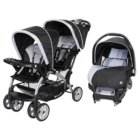 Baby Trend Double Stroller and Car Seat Combo, Toddler and Infant Travel System with Safety Harnesses and Cover, Lightweight Design, Stormy