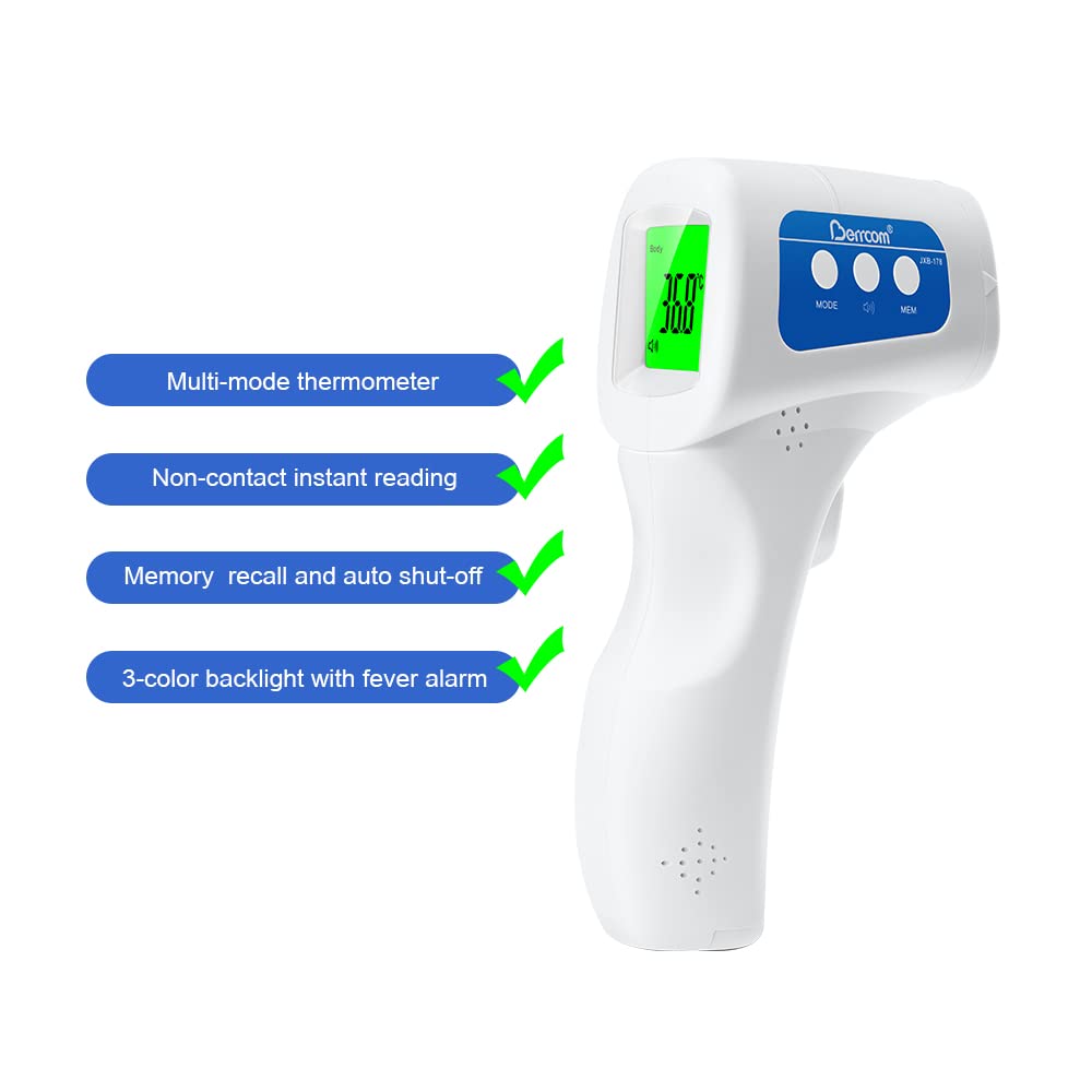 • ★【3-COLOR BACKLIGHT with FEVER ALARM】: Berrcom thermometer JXB-178 has large 3-color backlit display and fever beeping alarm indicating normal, elevated and fever temperature respectively in body mode; Mute and buzzer modes are available.
