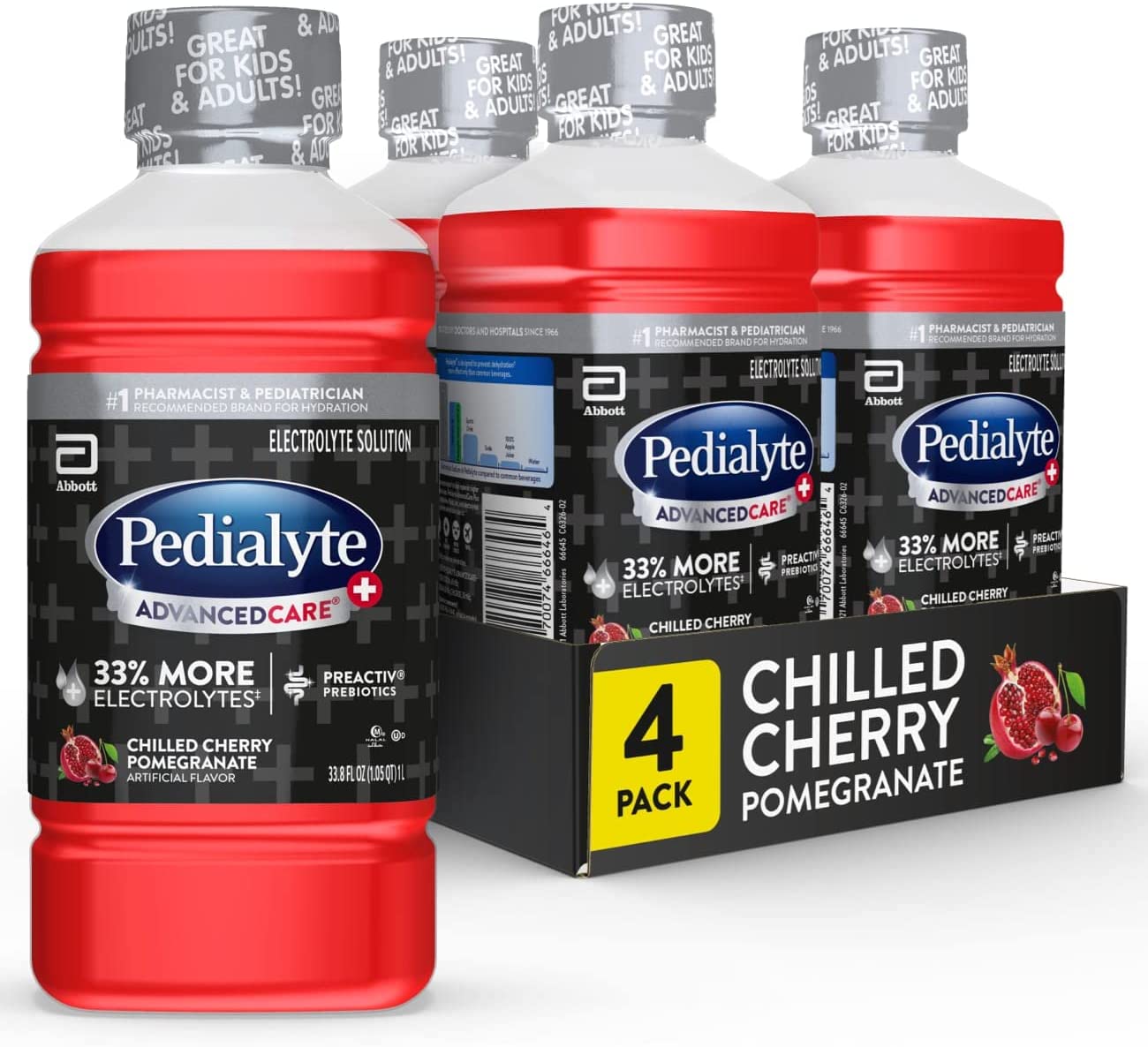 Pedialyte AdvancedCare Plus Electrolyte Solution is our most advanced way to rehydrate quickly and replace lost fluids and electrolytes to feel better fast. Pedialyte AdvancedCare Plus is an electrolyte drink that offers 33% more electrolytes and is formulated to replenish more of the electrolytes you may lose due to vomiting, diarrhea, or extreme perspiration caused by excessive heat or prolonged exercise. Pedialyte AdvancedCare Plus also has PreActiv Prebiotics to help promote a healthy digestive system. 60 mEq sodium electrolytes per liter vs 45 mEq in original Pedialyte.