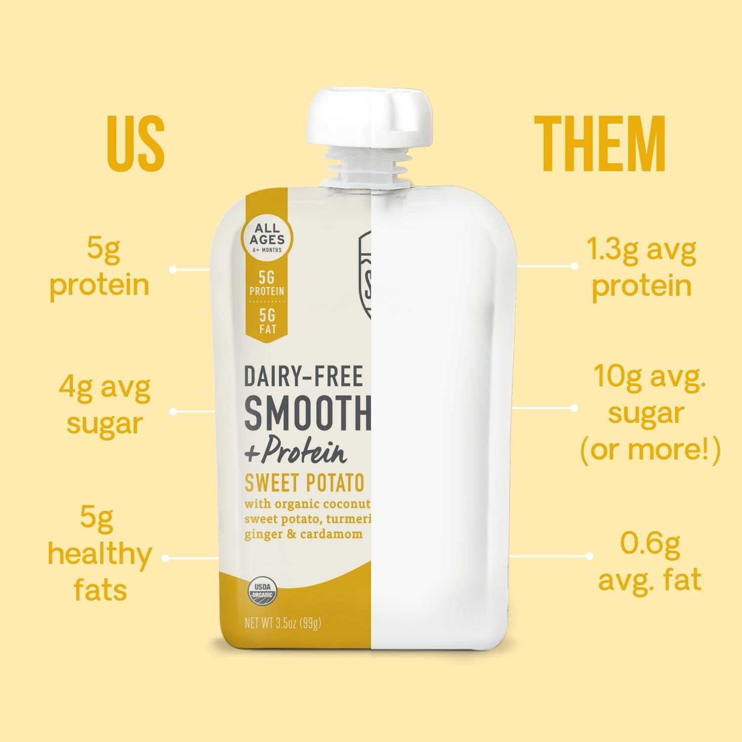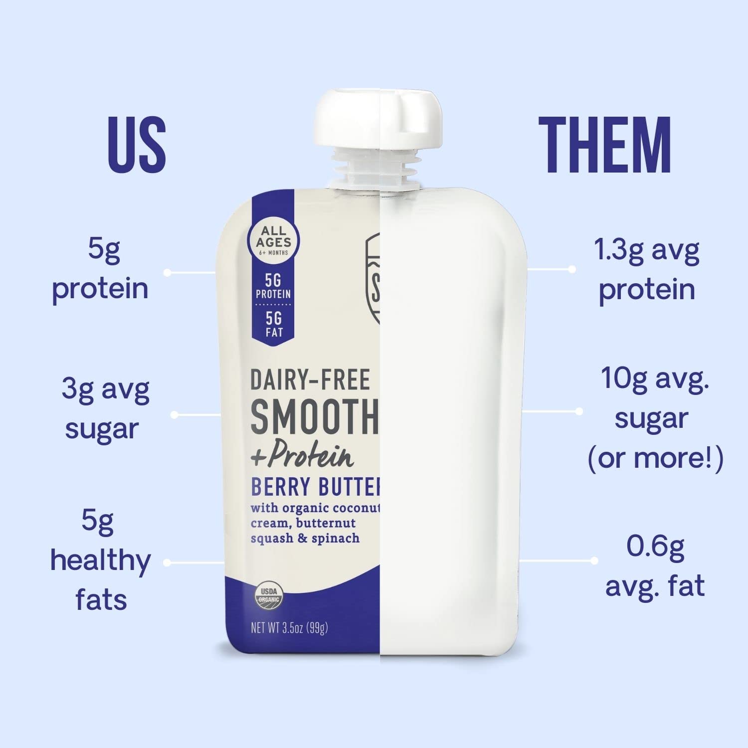 • HOW DOES IT TASTE? Our smoothies are smooth, creamy, and the perfect balance of sweet & savory. Deliciously crafted with coconut cream and organic vegetables, they contain 60% less sugar than other similar smoothie pouches. We aim for the perfect balance of sweet and savory, to keep the sugar low but the taste supreme! These are a great way to get more protein and veggies into your child, while still mimicking the fruit pouches they may already enjoy.