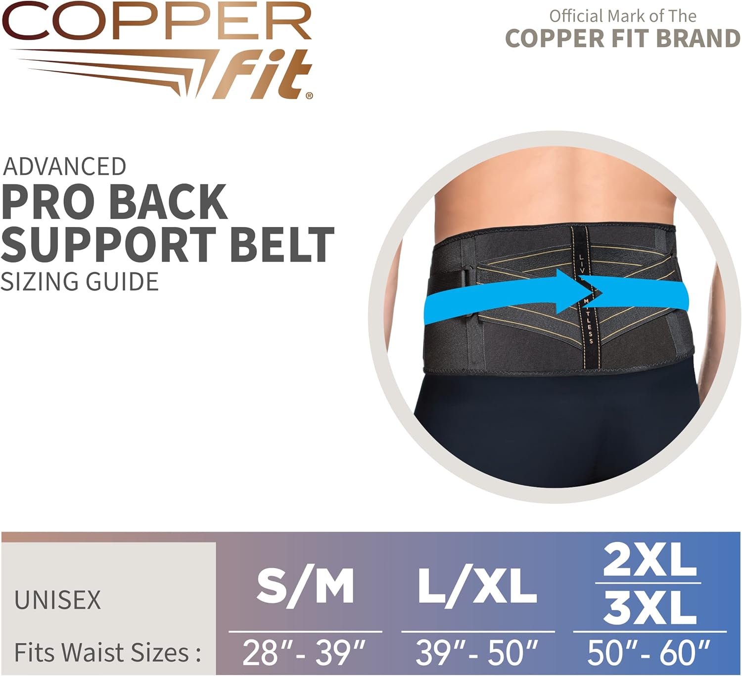 Get the Support Your Need CopperFit PRO is designed for athletes, weekend warriors or anyone with an active lifestyle seeking relief. CopperFit PRO is built tough to stand up to your most extreme training, but still comfortable enough for everyday wear. All Copper Fit products are made of high-quality performance fabrics with wicking technology to help you stay cool and dry. How Quickly Will I Feel the Benefits? Many people report feeling immediate relief when wearing CopperFit. It's important to remember that the benefits of wearing your support can only be felt when they are worn and sized properly. When Should I Wear a Copper Fit Support? Copper Fit can be worn anytime; while participating in physical activity, moderate activity, or when completely at rest. They're great for daytime and nighttime. Copper Fit supports offer the highest quality comfort fit, making them ideal for extended wear. Many people benefit from wearing Copper Fit all day long, underneath their clothes. The contoured, slim and lightweight design fits discreetly under clothes. How do I determine sizing? The sleeve includes adjustable compression straps to customize your fit for form-fitting support. There is a chart that makes finding the right Copper Fit size simple. All you need to do is take an easy waist measurement and find the corresponding size on the chart. Sizing Waist S/M - 28" - 39" L/XL - 39" - 50" 2XL/3XL - 50" - 60"