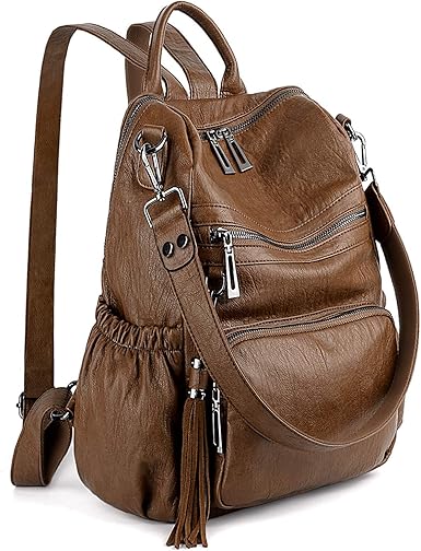 UTO Women Backpack Purse Leather Vegan Ladies Fashion Designer Rucksack Convertible Travel Shoulder Bag with Tassel