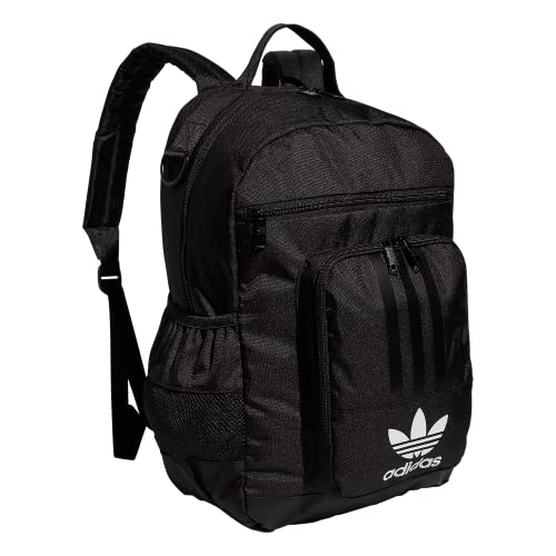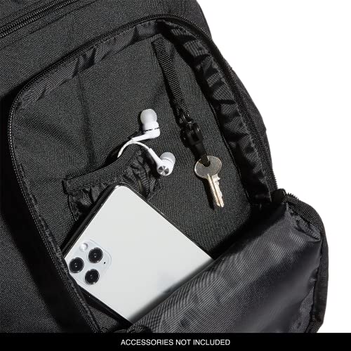 Details: Pack up your gear and head to school or the gym. this adidas backpack has a laptop sleeve and a tech pouch for earbuds inside the zip main compartment. two large front pockets give you additional storage. made with recycled content.