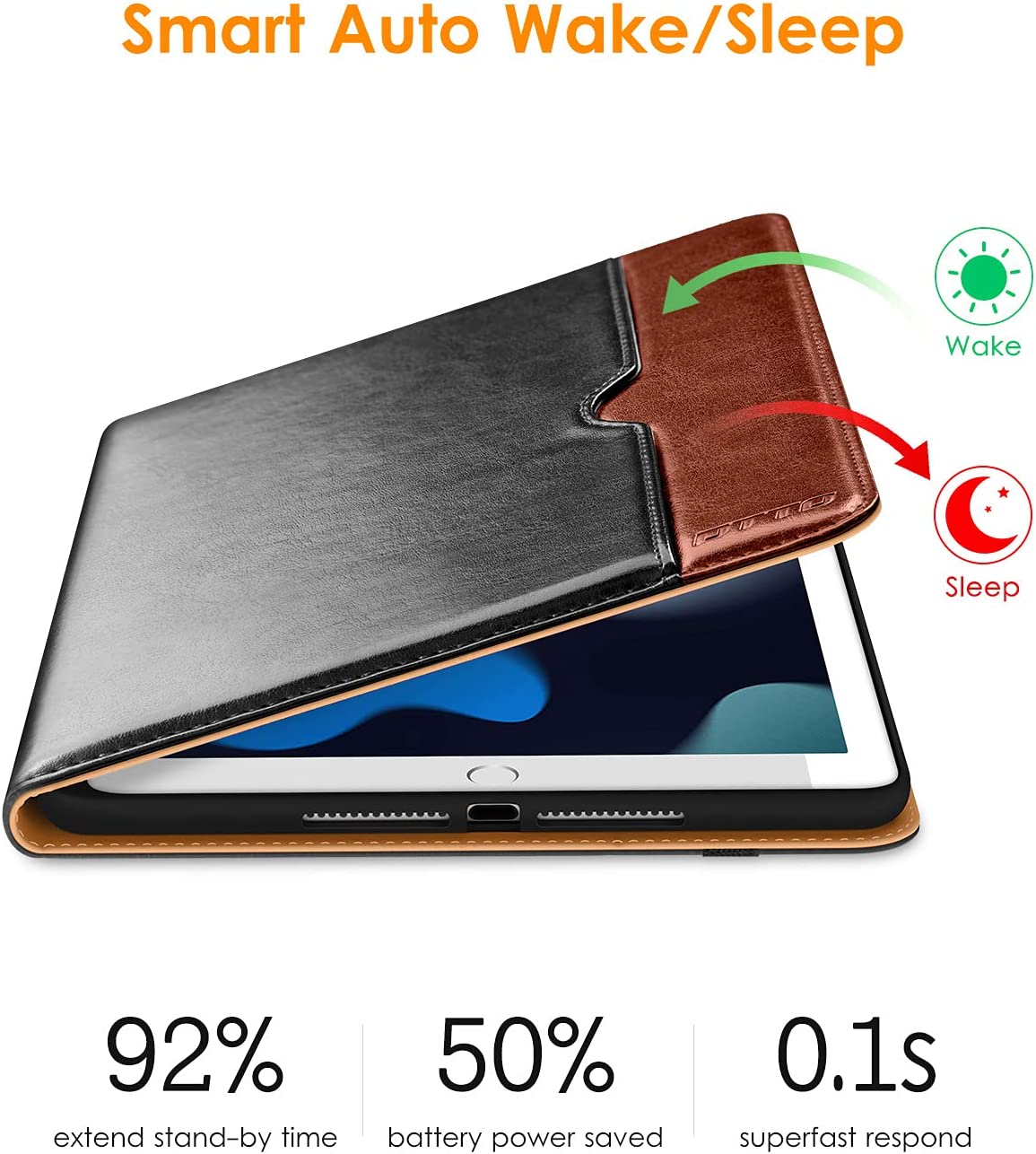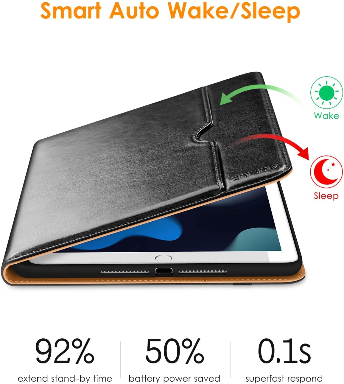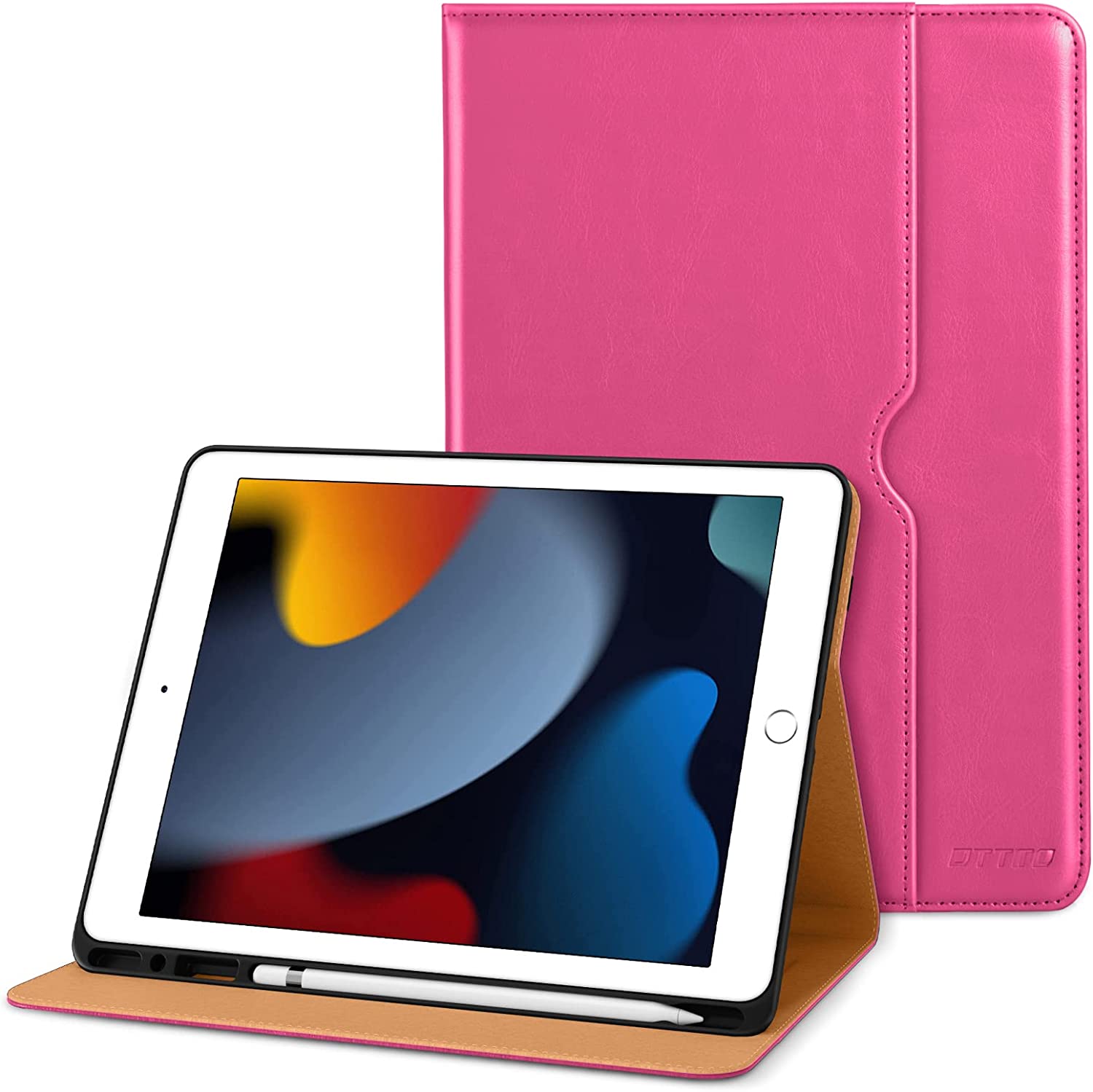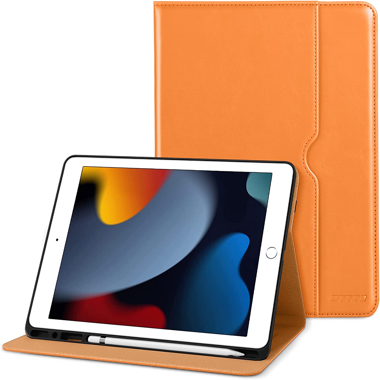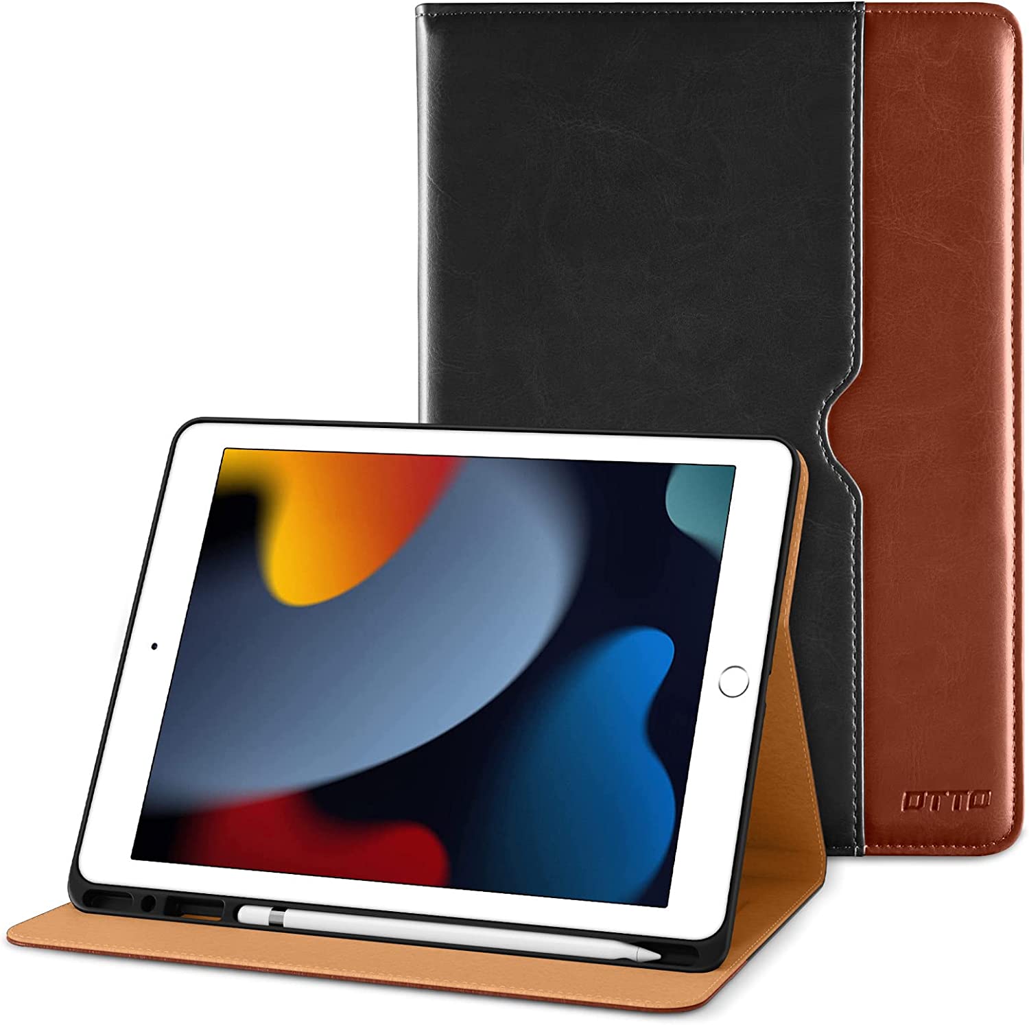 DTTO iPad 9th/8th/7th Generation 10.2 Inch Case 2021/2020/2019, Premium Leather Business Folio Stand Cover with Built-in Apple Pencil Holder - Auto Wake/Sleep and Multiple Viewing Angles, Dark Brown