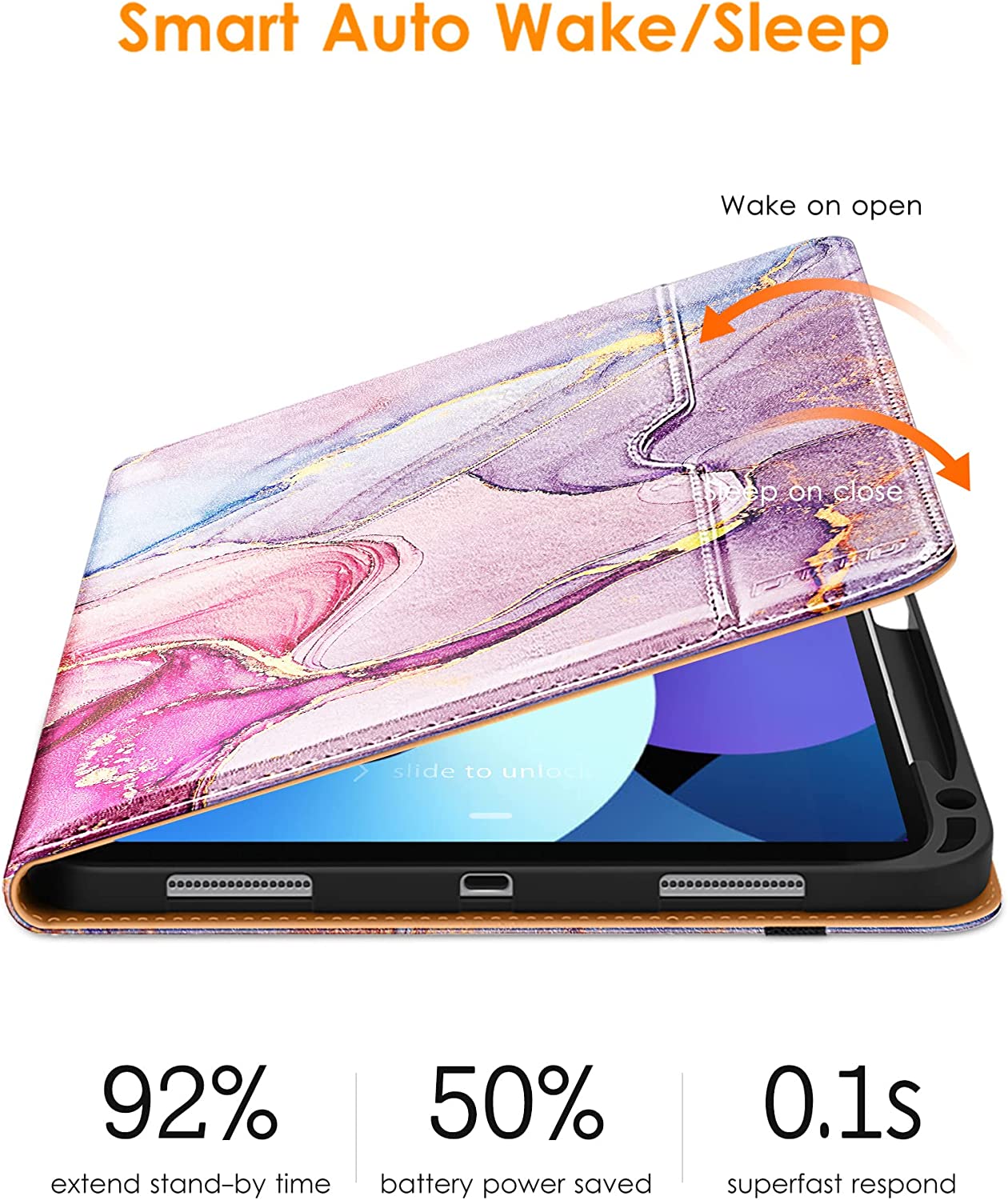 • 🌟Magnetic smart cover - Auto Wakes/Sleep, external elastic band enhances magnetic closure (reduces battery drain).