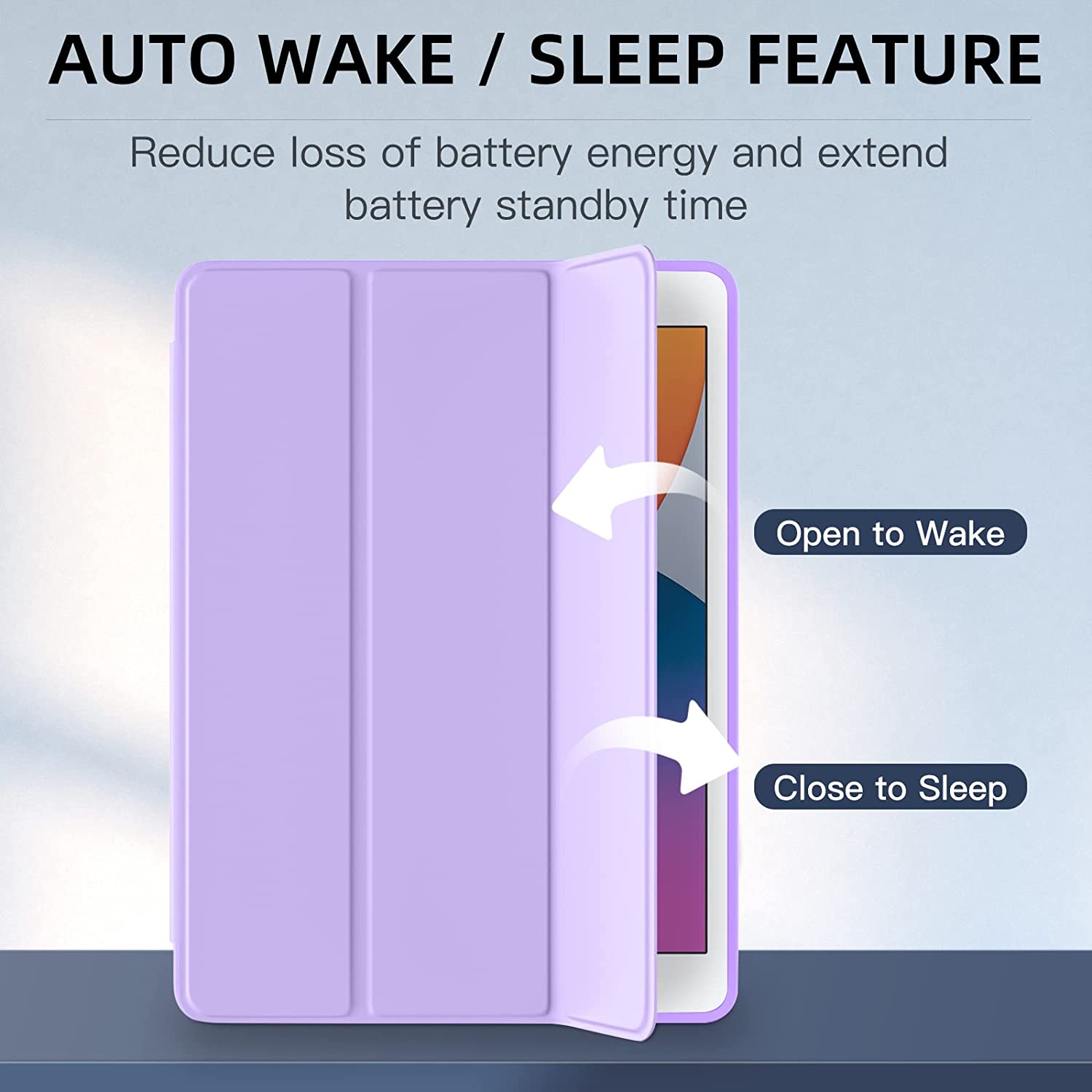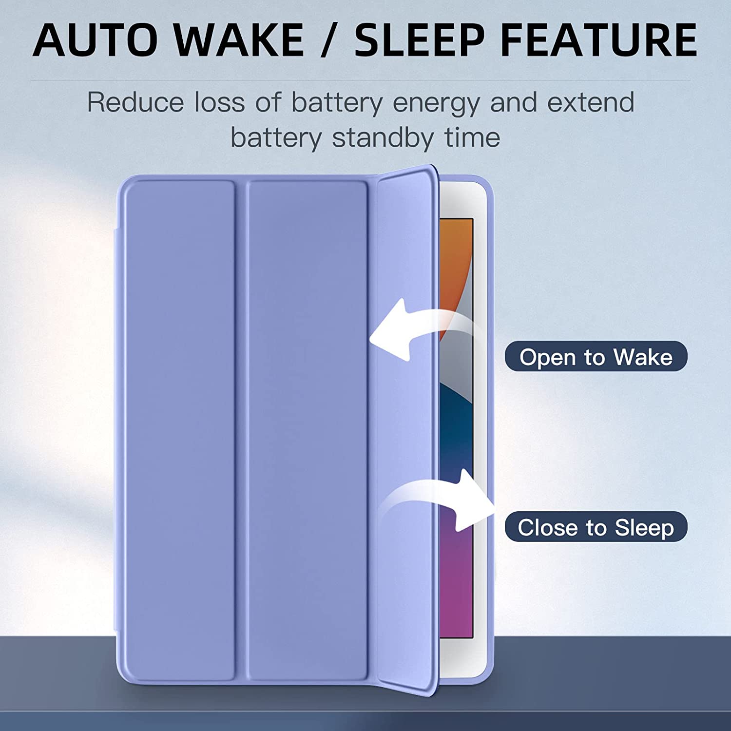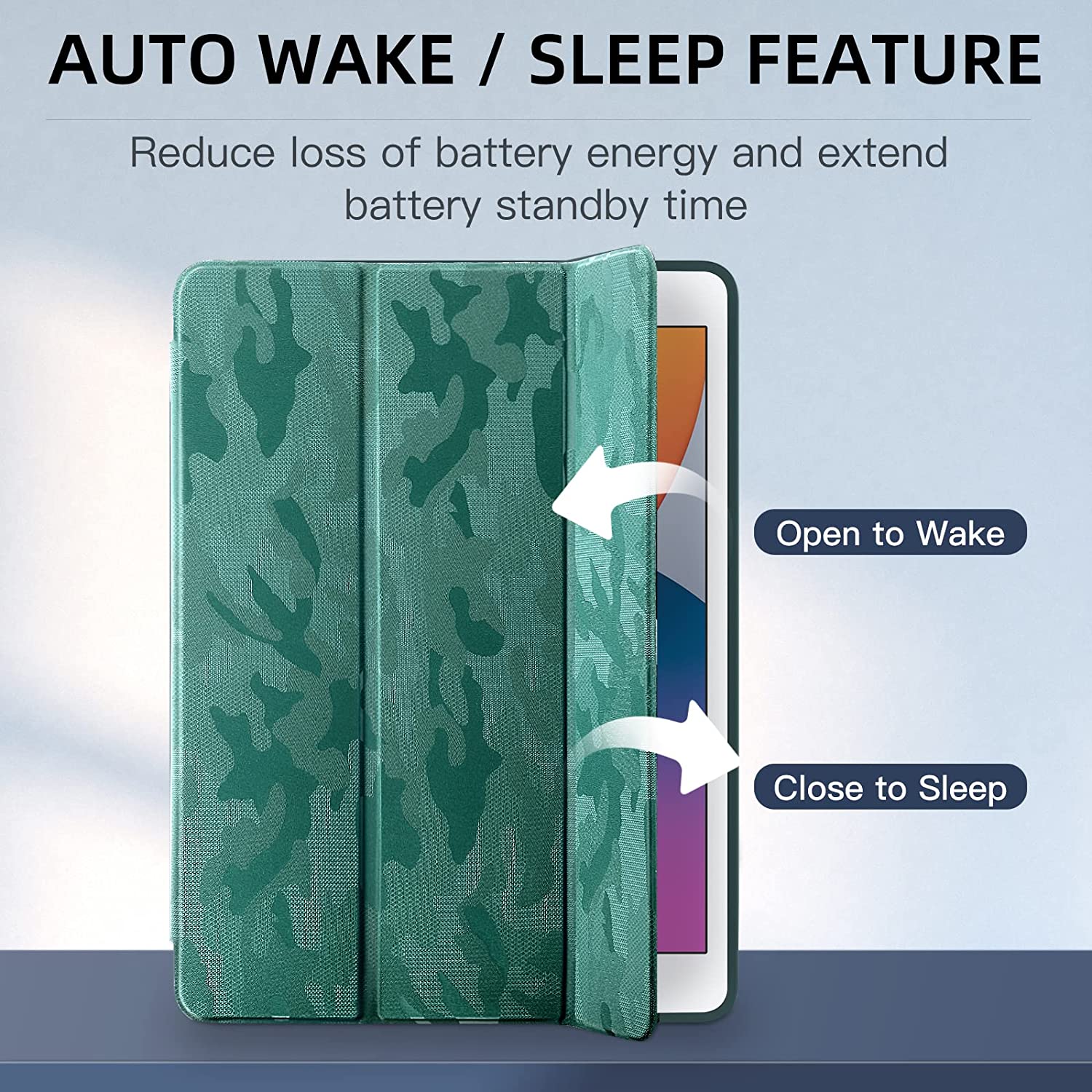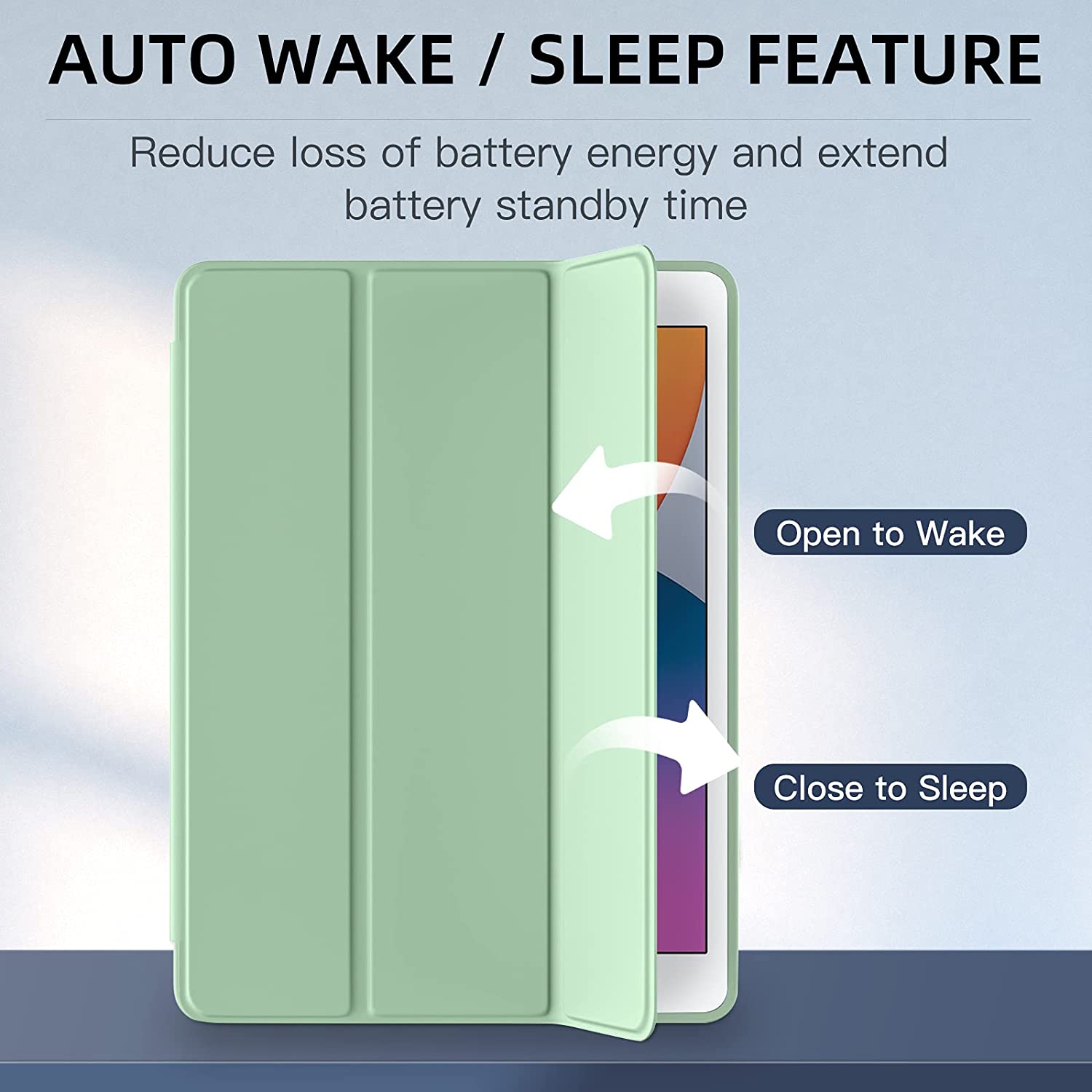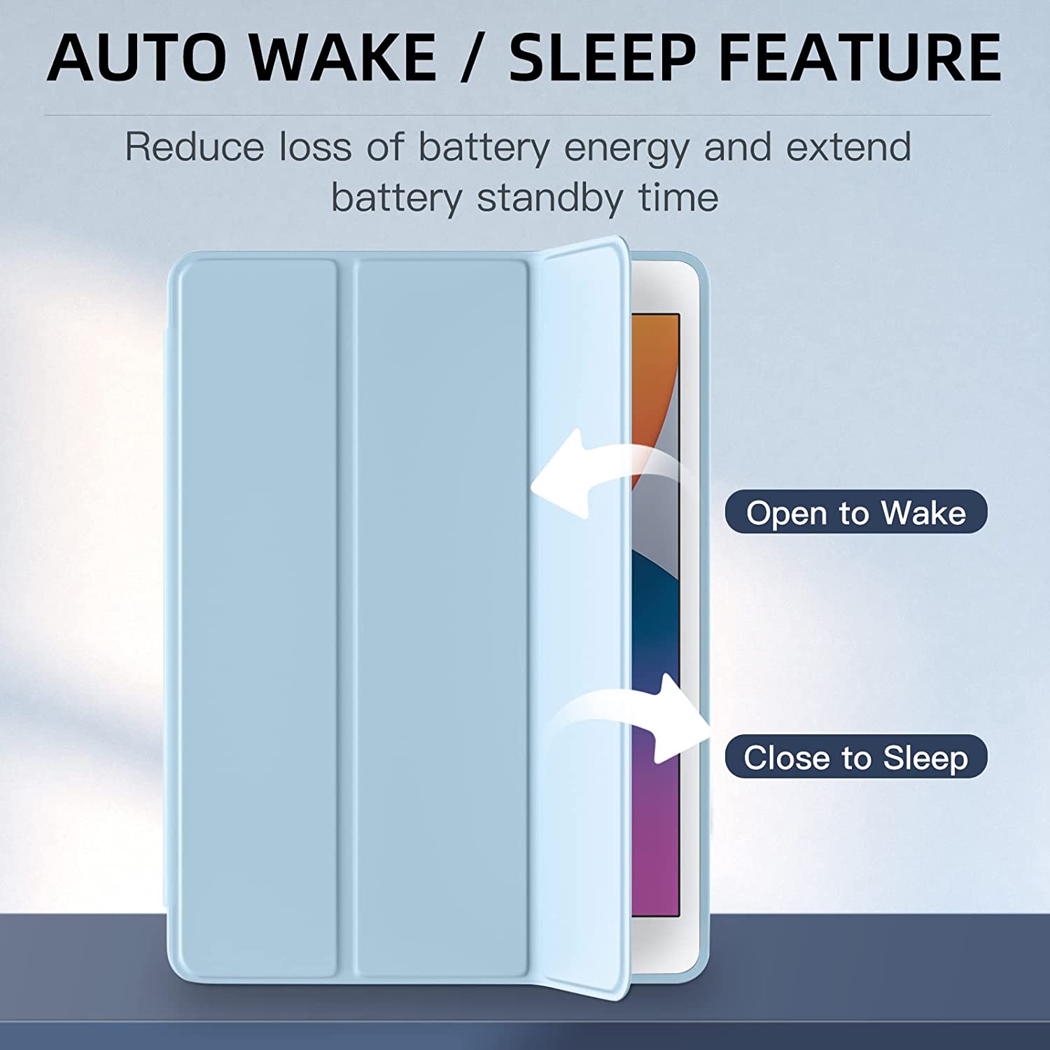 • Auto Wake/Sleep: Built-in magnetic strip in the front cover, it featured auto wake/ sleep. Once you open or close iPad case, the smart magnetic senor will wake up or make the tablet to sleep. No wasting the battery energy and extend battery standby time