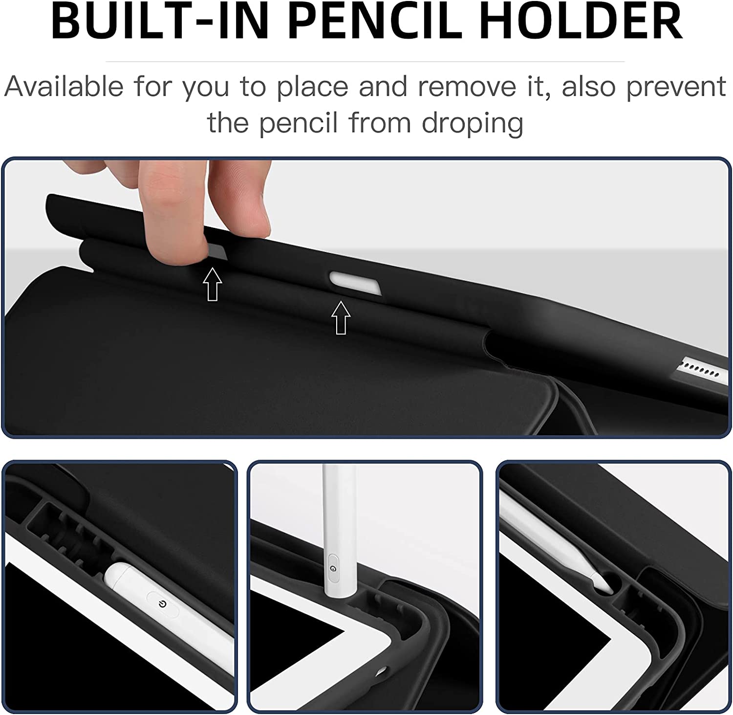 • Perfect Fit: Precise cutouts make it easy access to all functional buttons and features(camera, speaker,senors and charging ports) without remove your iPad case cover. Attention: Apple Pencil is NOT included