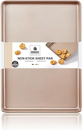 Half Cookie Sheet Pan for Baking - HONGBAKE Nonstick Baking Sheet with Diamond Texture Surface, 57% Thicker Carbon Steel Commercial Cookie Trays for Oven
