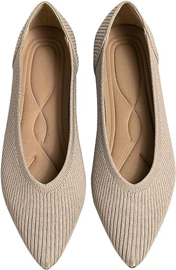 Women's Pointed Toe Knit Ballet Fashionable and Comfortable Dressy Flat Shoes