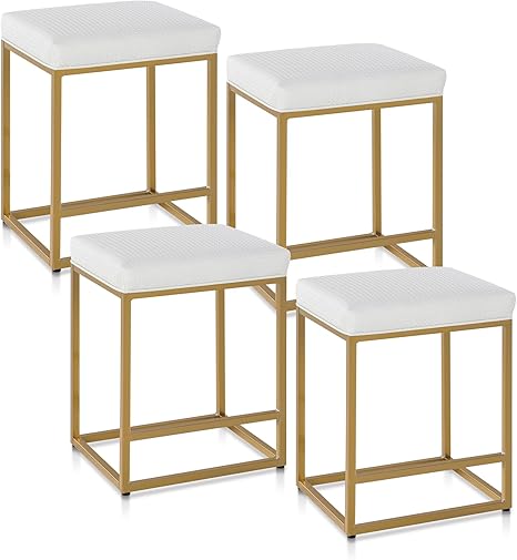 ALPHA HOME 24 Inch Counter Height Bar Stools Set of 4, Upholstered Bar Stools for Kitchen Island, Counter Stools with Faux Leather Cushion and Sturdy Metal Frame, Modern Barstools, White and Gold