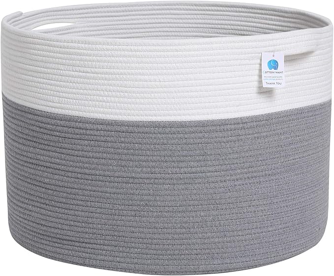 24" x 24" x 17" Max Size Large Cotton Rope Basket, Extra Large Storage Basket, Woven Laundry Hamper, Cloth Storage Bin, for Blankets Clothes Towels Pillows in Living Room, Grey