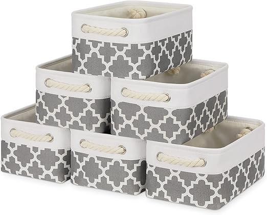 Bidtakay Small Storage Basket Cute Storage Bins Collapsible Fabric Basket Set of 6 Canvas Organizer Bin Empty Gift Baskets Baby Nursery Toys 11.8 X 7.8 X 5 Inches(White&Quatrefoil Grey)