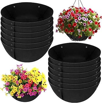 12 Pack 14 Inch Round Fabric Planter Basket Liner Hanging Basket Liners Black Coco Fiber Replacement Liner for Hanging Baskets Non-Woven Planter Liners for Outdoor Plants Avoid Bird Nesting