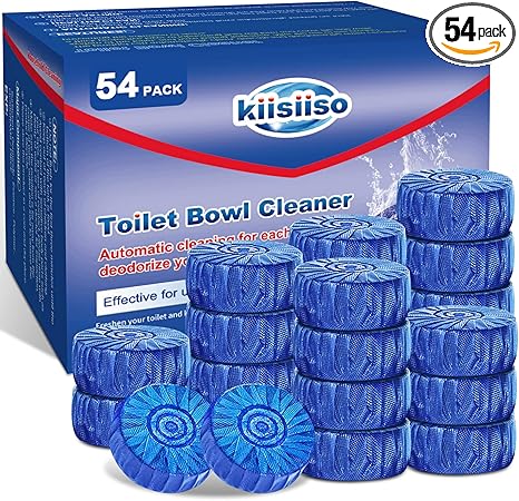 KIISIISO Multipurpose Bathroom Cleaners, 54 Pack Commercial & Household Toilet Bowl Cleaners, Blue Toilet Bowl Tablets Drop in Tank, Janitorial Deodorizers
