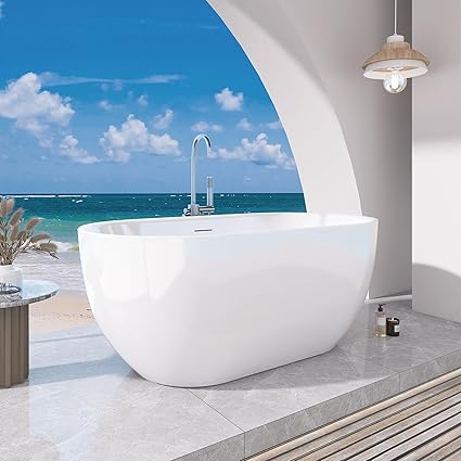 59" Free Standing Tub Classic Oval Design, Acrylic Bathroom Tub Modern White, Soking Tub with Central Drain and Overflow