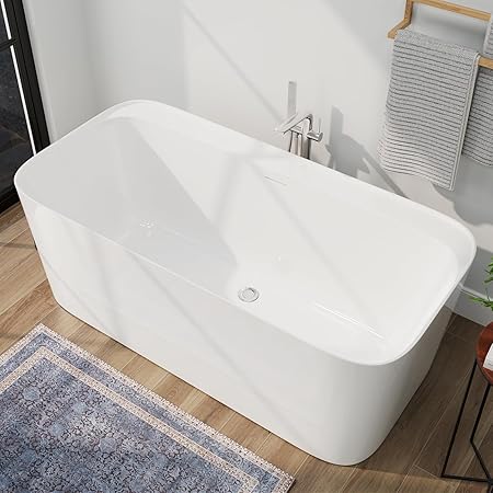 59" Lucite Acrylic Freestanding Bathtub, Rectangular Shape Contemporary Soaking Tub with Toe-tap Chrome Drain, Slotted Overflow, cUPC Certified, Glossy White