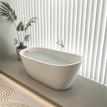 67" Acrylic Freestanding Slipper Bathtub, Gloss White Finish, Chrome Overflow & Pop-Up Drain, Unique Modern Design, Luxurious Soaking Tub for Comfortable and Indulgent Bathing Experience (White, 67IN)